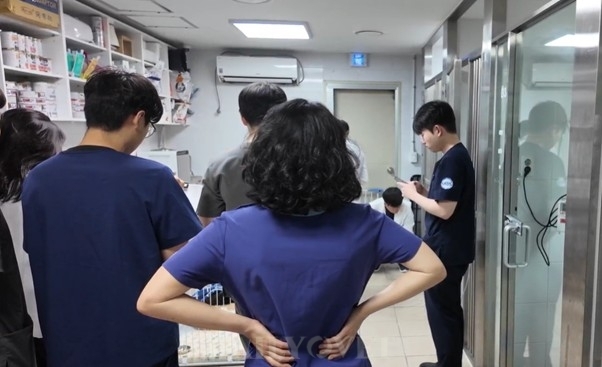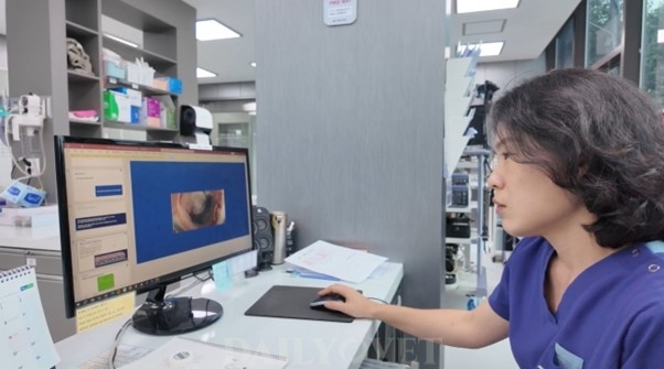 선생님을 따라 처치실로 이동한 학생기자단은 선생님께서 환자의 영상 사진을 확인하고 주치의 선생님과 대화를 나누는 모습을 보았다.