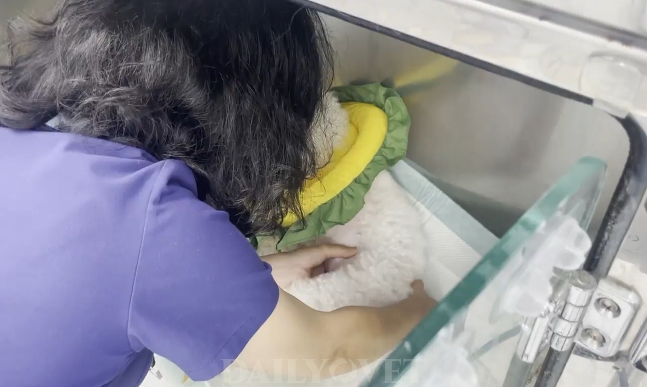 한 환자의 복부를 눌러 통증 반응이 없는 것을 확인했다. 다행히 이틀 전 진행됐던담낭 제거 수술이 잘 된 모양이었다. 다음은 두번의 장중첩으로 수술을 한 고양이 환자였다. 장이 중첩되면 소세지 같은 모양이 만져지는데, 복부를 만져보고 장에 이상이 없음을 확인했다.