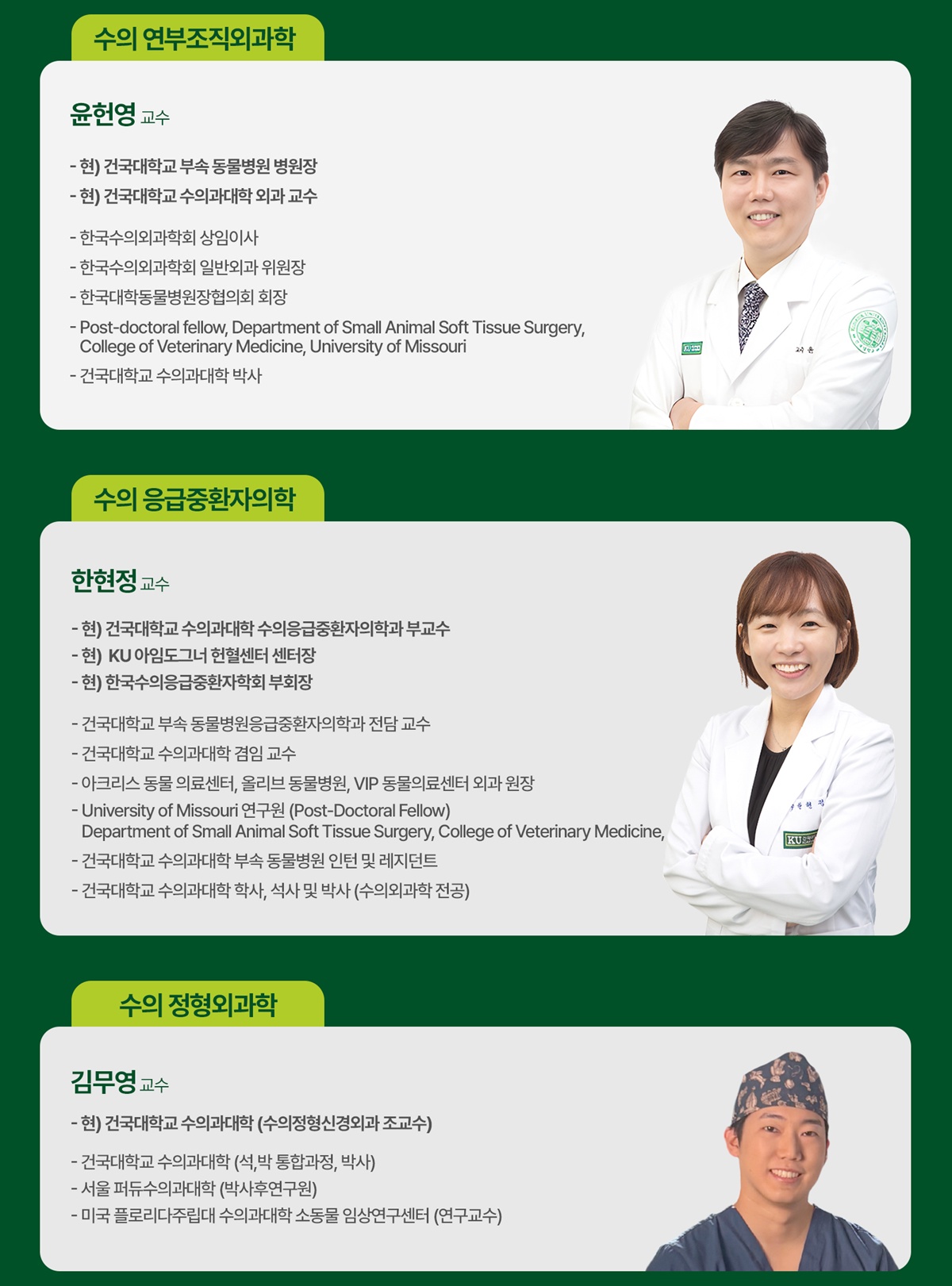 교육은 ▲수의 연부조직외과학(윤헌영 교수) ▲수의 응급중환자의학(한현정 교수) ▲수의 정형외과학(김무영 교수) 총 3개 세션으로 나뉘어 진행된다.