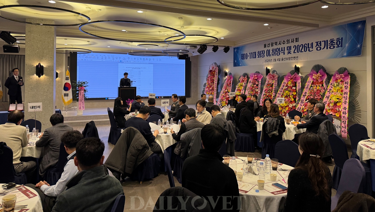 울산광역시수의사회(회장 장환수)가 4일(수) 울산보람컨벤션에서 2026년도 정기총회를 열고 회장 이취임식을 개최했다.