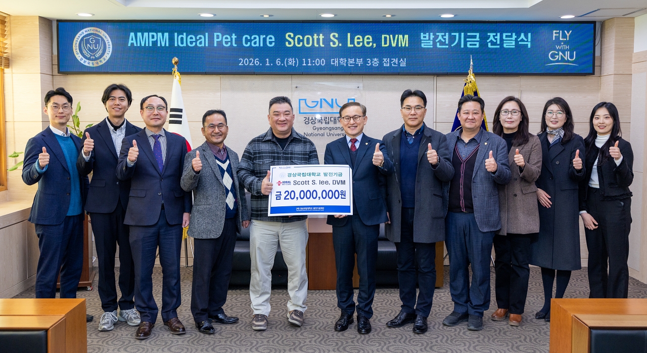 경상국립대학교 동문인 미국 ‘AMPM Ideal Pet Care’ 이시경(Scott S. Lee) 원장이 대학발전기금 2천만원을 기부했다.