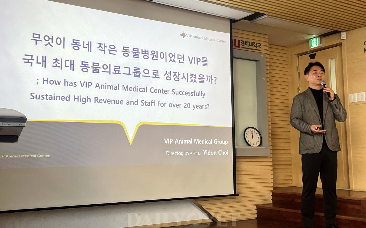 이날 최이돈 원장은 동네의 작은 동물병원이었던 VIP가 국내 최대 동물의료그룹으로 성장한 과정과 그 이면의 경영 철학, 조직 운영 방식을 소개했다.
