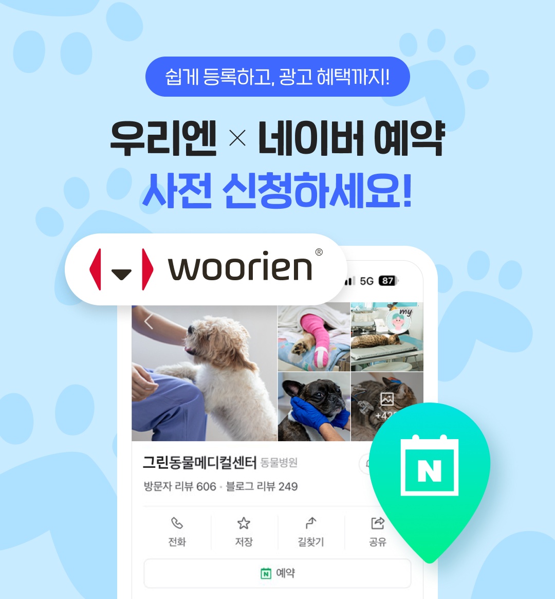 동물용 의료기기 전문기업 우리엔(대표 고석빈)이 eFriends(이프렌즈) 사용 동물병원을 대상으로 네이버 예약 연동 서비스를 공식 오픈하며 사전 신청 접수를 시작했다.