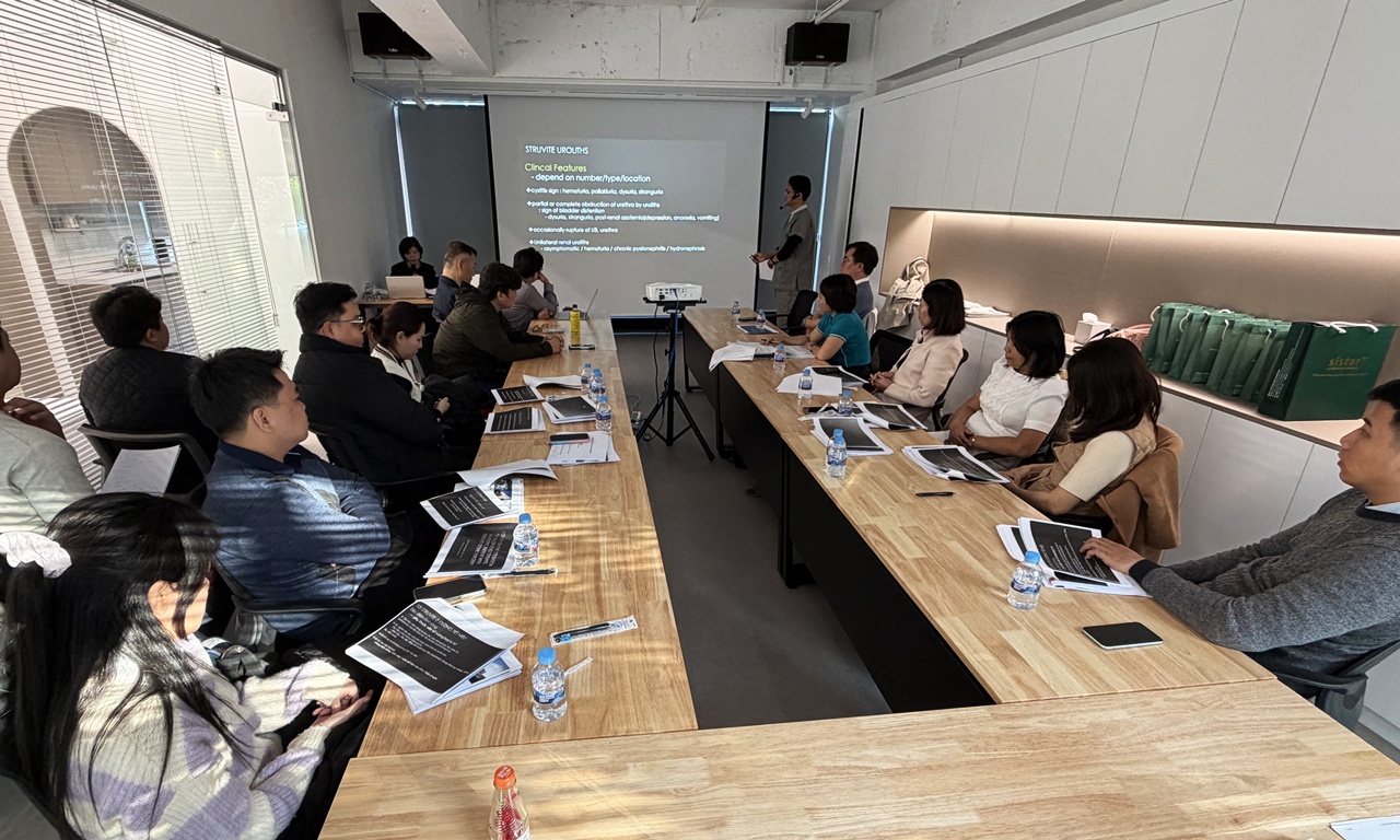 특별히, 이번 세미나에는 ‘알러제로’ 사료를 현지에 공급하고 있는 베트남 수의사, 필리핀 수의사 및 유통 관계자들도 참석해 눈길을 끌었다. 이들은 세미나를 통해 제품의 과학적 근거를 확인하고, (주)에스씨아이의 연구 시설을 견학하며 한국 처방사료의 기술력을 직접 확인했다.