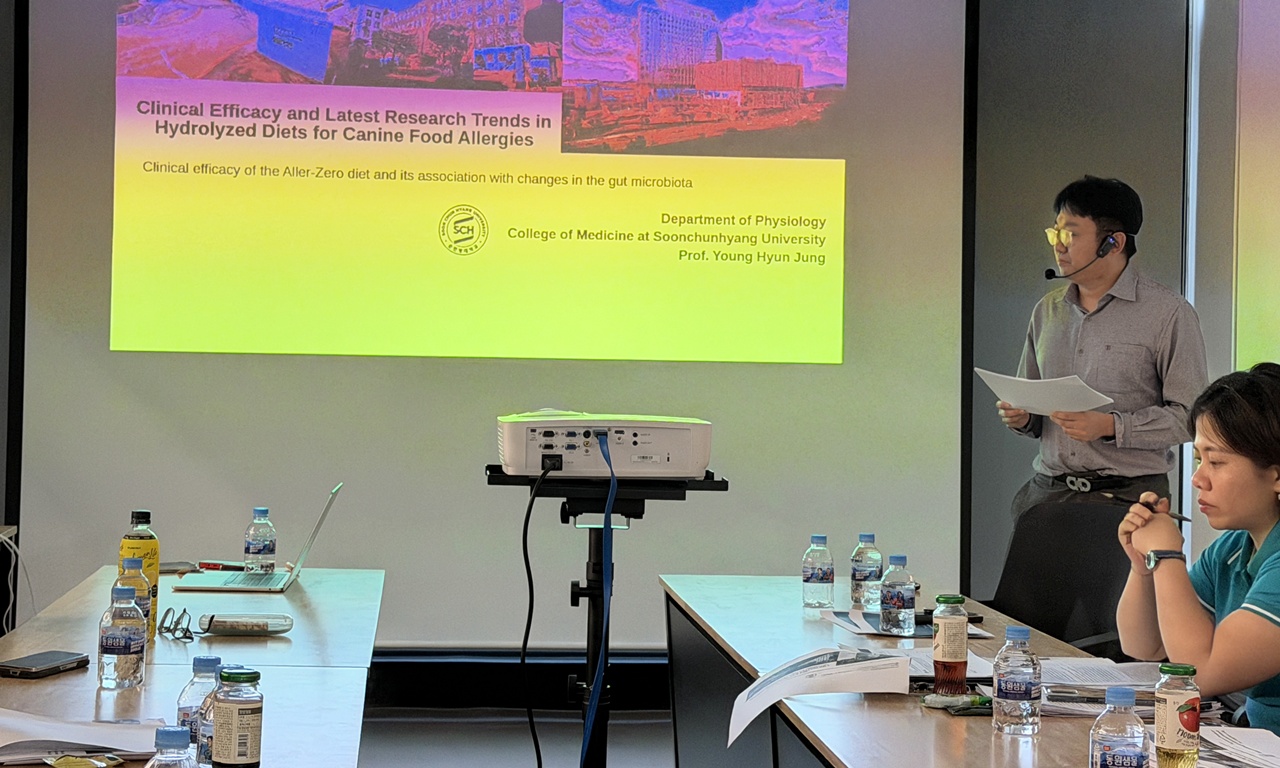 알러겐 프리 처방사료 ‘알러제로(Aller-Zero)’와 신규 런칭한 하이포알러제닉 처방사료 ‘알러케어(Aller-Care)’를 소개하기 위한 마련된 이날 세미나에는 해외 바이어 및 국내외 수의학 전문가들이 참석했다.