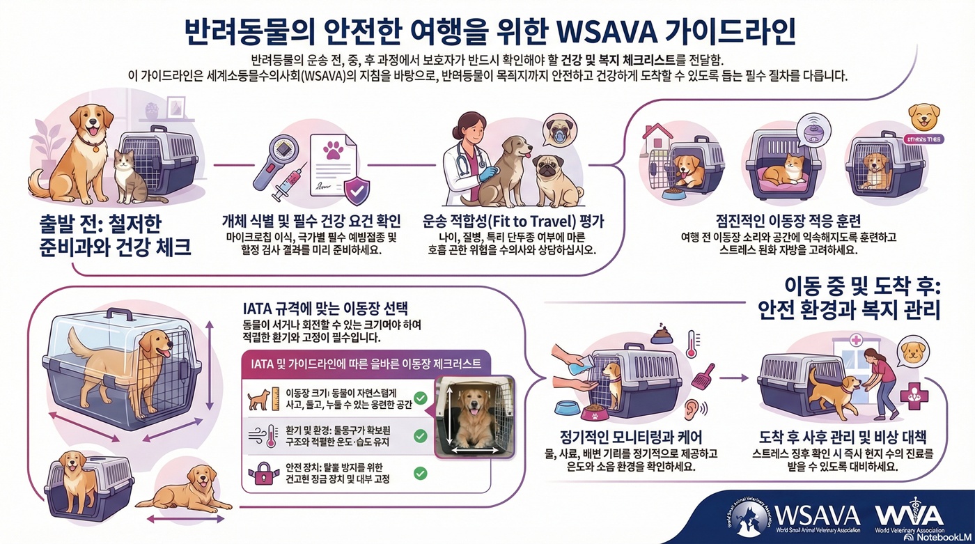 WSAVA는 “단두종이나 여행 관련 불안·멀미에 취약한 동물에게는 특별한 관리가 필요하다”고 주의를 당부했다.