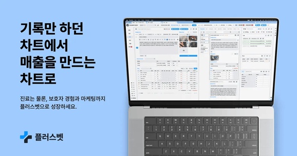 한편, 플러스벳은 차세대 동물병원 운영 관리 디지털 플랫폼으로 주목받고 있다. ▲원내 운영 환경 자동화를 위한 차트(EMR) ▲재진 마케팅을 위한 고객관계 관리(CRM) ▲실시간 AI 음성 인식 차트(준비 중) 외에 동물 병원 관리 시스템을 모두 차트 하나로 운영할 수 있다.