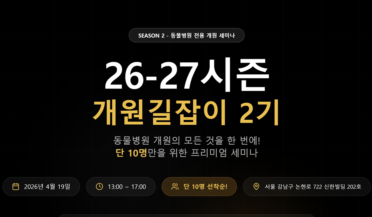 화제의 동물병원 개원세미나, 개원길잡이 2기 4월 19일 개최