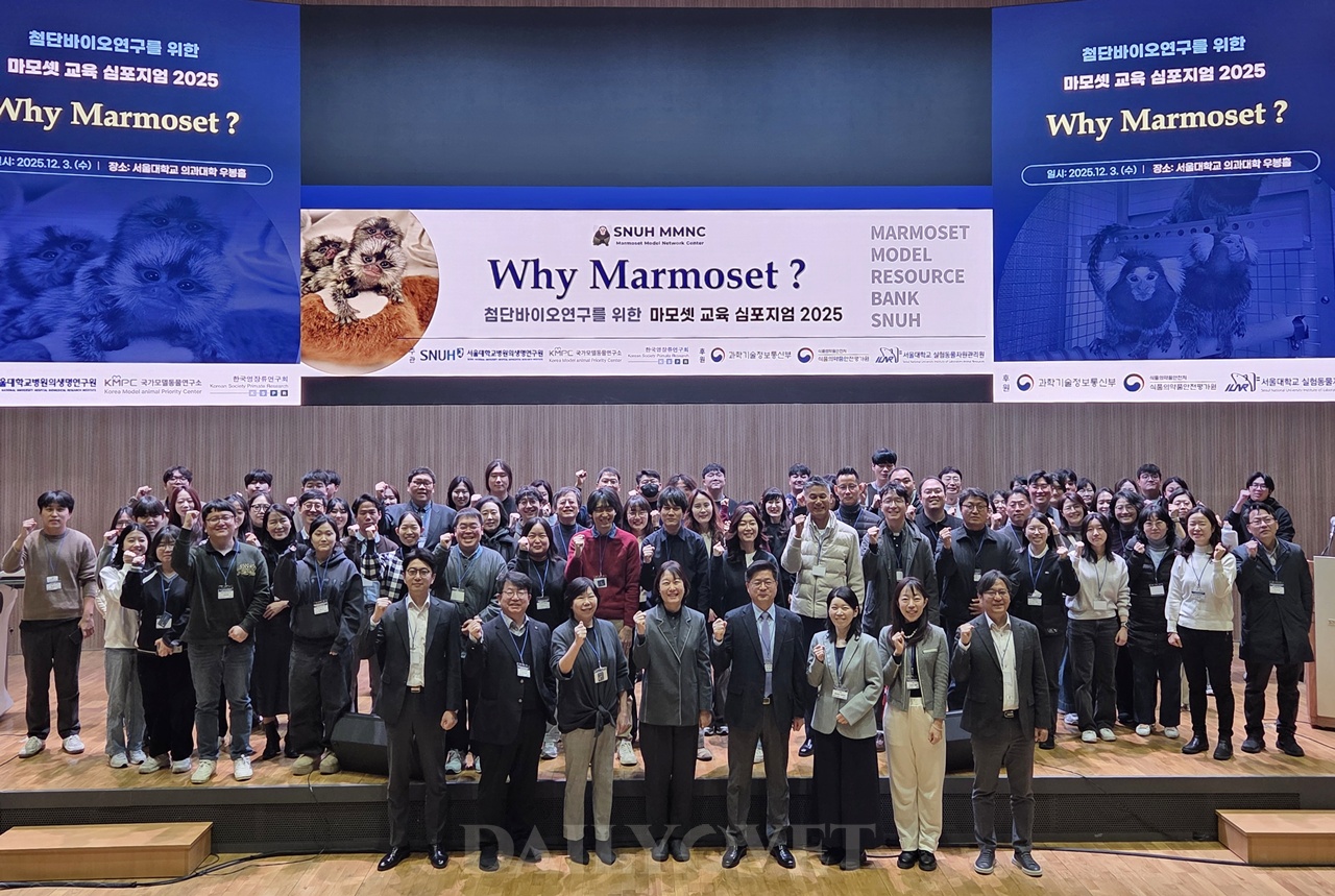 이런 상황에서 ‘첨단바이오연구를 위한 마모셋 교육심포지엄 2025’가 개최되어 주목받았다. 3일(수) 서울대학교 의과대학 의학도서관 우봉홀에서 열린 이번 심포지엄은 ‘Why Marmoset?’을 주제로 진행됐으며, 서울대학교병원의생명연구원, 국가모델동물연구소, 한국영장류연구회가 공동주관했다.