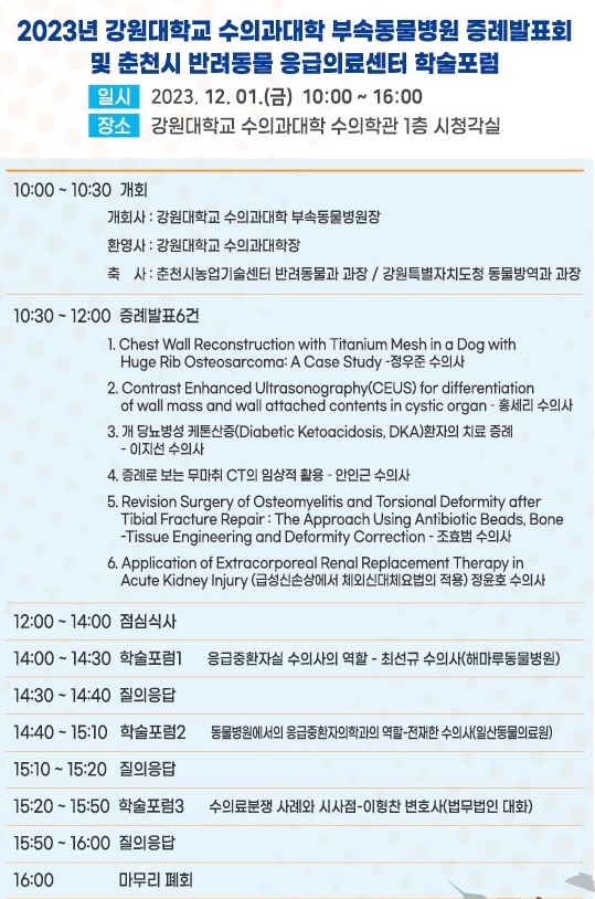 주최/주관 : 강원대학교 수의과대학 부속동물병원 / 반려동물 응급의료센터