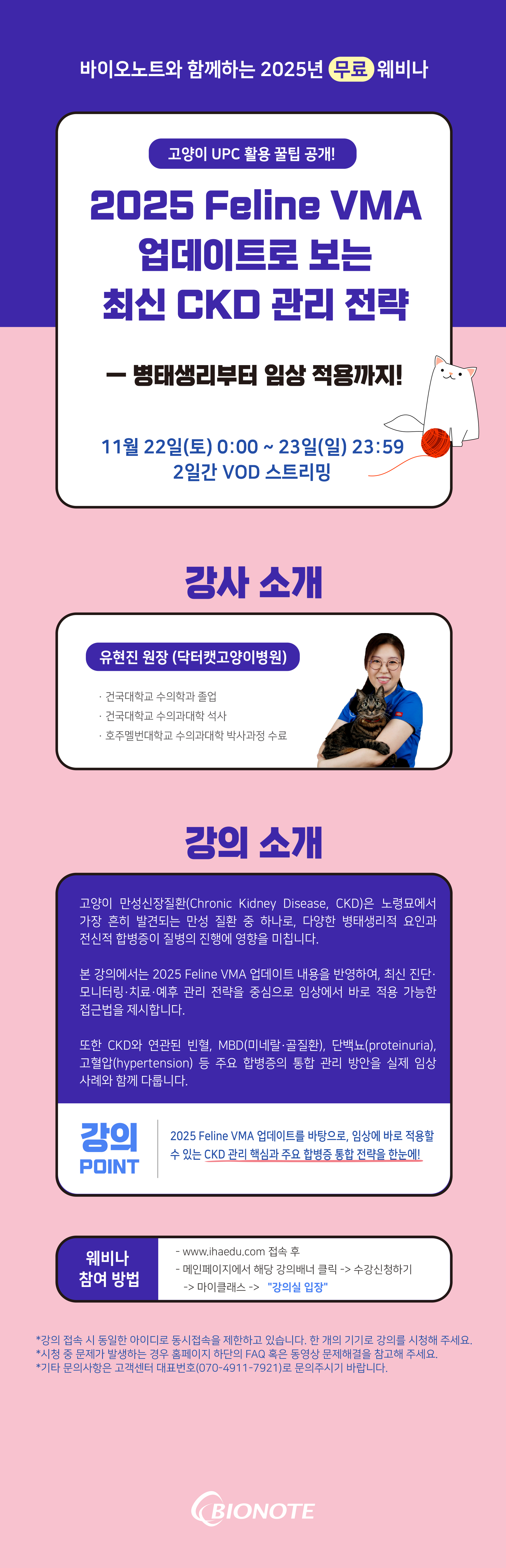 주제 : 2025 Feline VMA 업데이트로 보는 최신 CKD 관리전략 : 병태생리부터 임상 적용까지