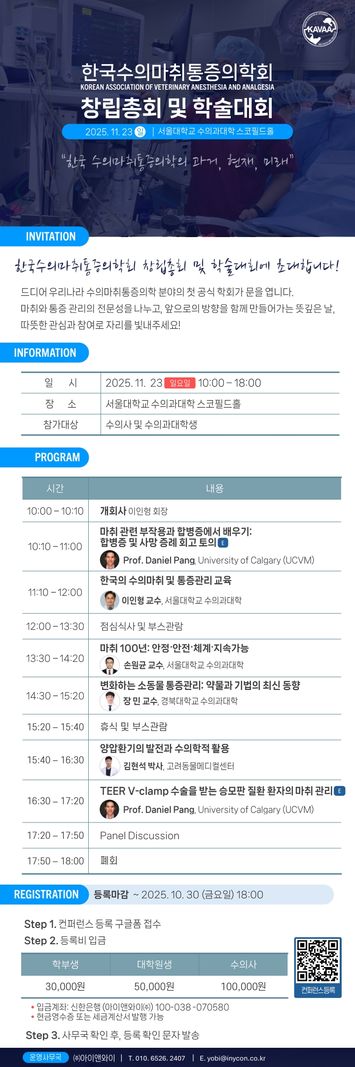 강사 : Daniel Pang 교수(캘거리대학교), 이인형 교수(서울대), 손원균 교수(서울대), 장민 교수(경북대), 김현석 박사(고려동물메디컬센터)
