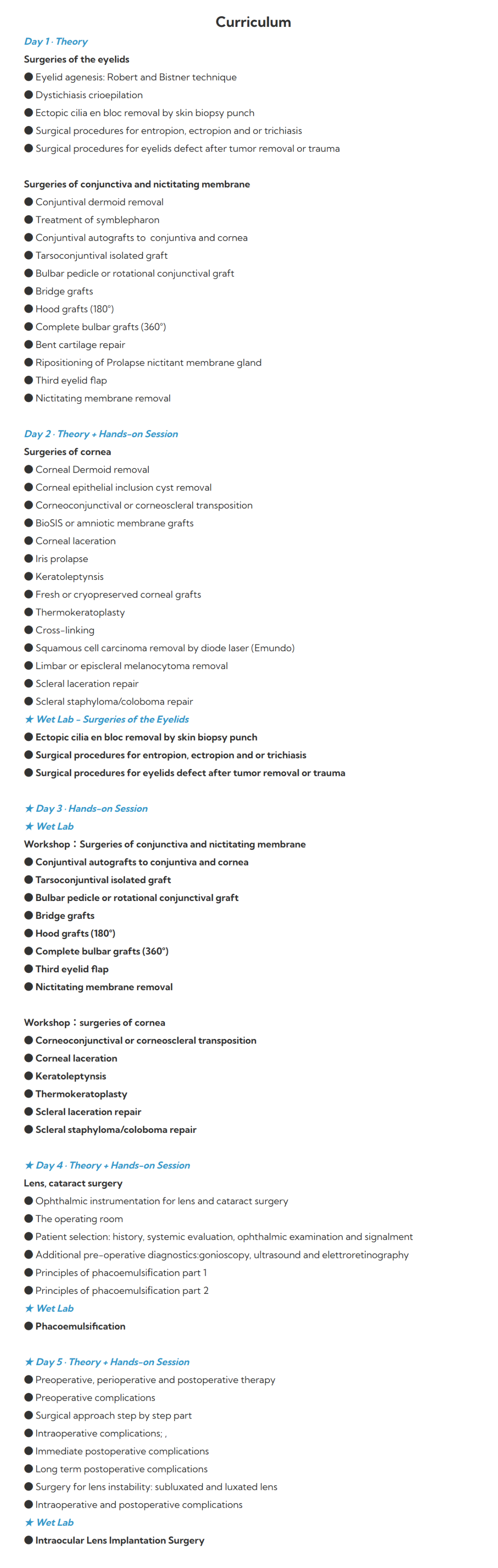 강의과목 : 안검, 각막, 결막, 공막, 수정체, 백내장 수술