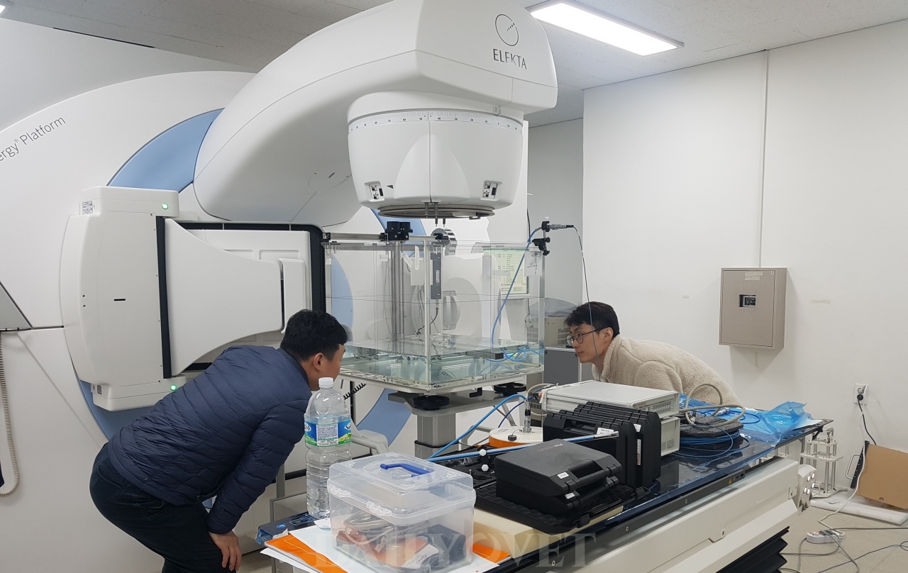 방사선 치료 기기 QA를 진행하고 있는 황태성 교수(오른쪽)