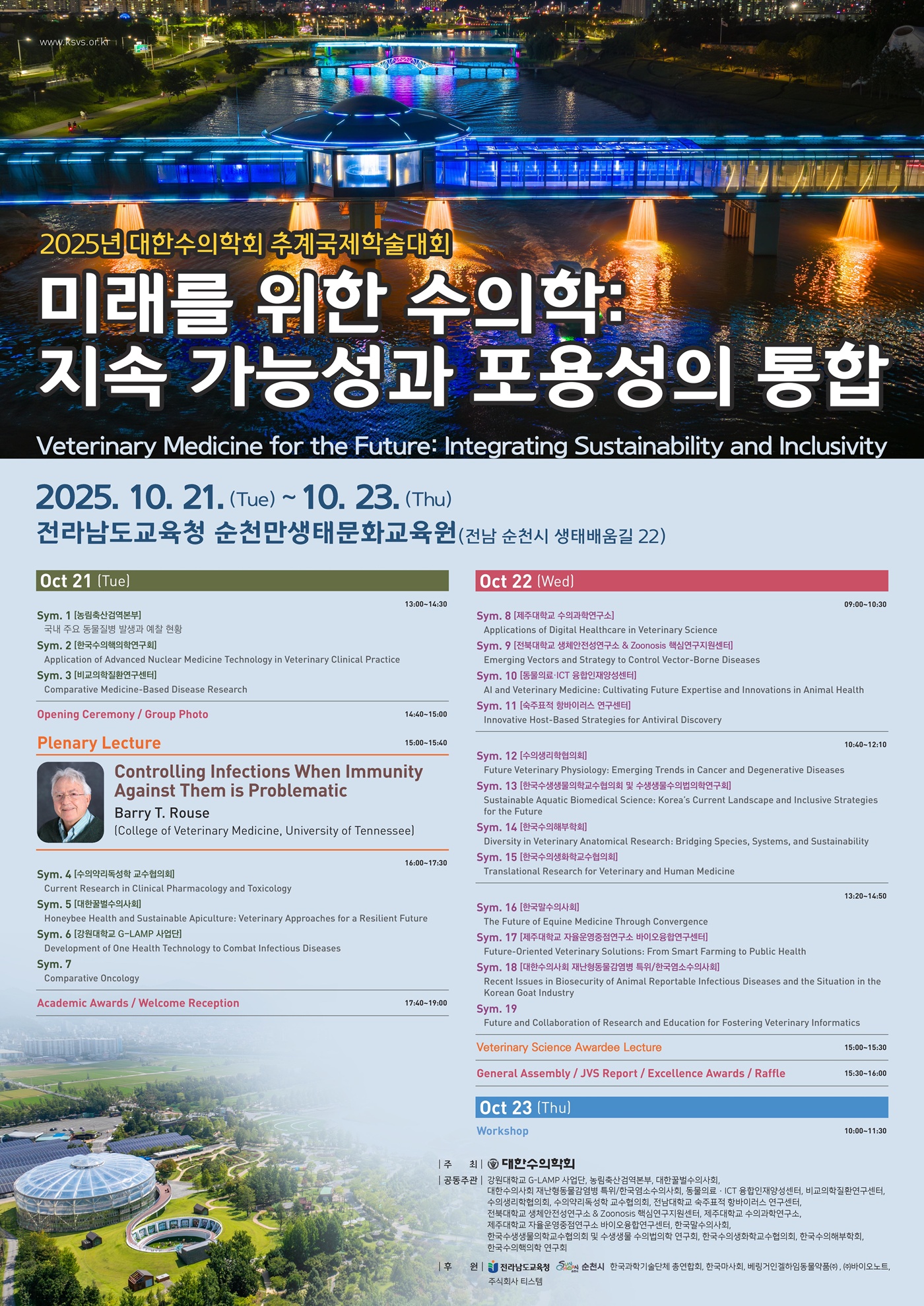 기조 강연은 미국 테네시대학교 수의과대학의 베리 라우즈(Barry T. Rouse) 교수가 맡았다.