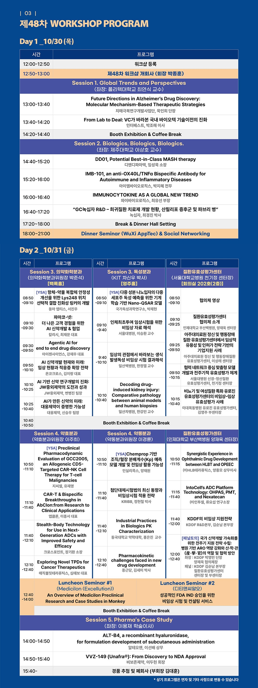 이어지는 ‘Biologics, Biologics, Biologics’ 세션에서는 디앤디파마텍, 아이엠바이오로직스, 와이바이오로직스, GC녹십자가 임상으로 이어지는 비임상 전략을 다룬다.