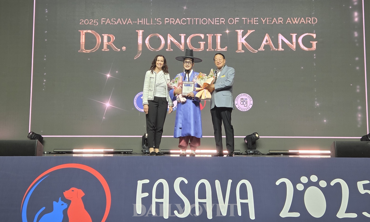 올해 파사바-힐스 어워즈는 강종일 충현동물종합병원장(전 KAHA 회장, 전 FASAVA 회장)이 수상했다. 힐스 글로벌 수석디렉터인 이베타 베크바로바(Iveta Becvarova) 미국수의영양학회(ACVN) 전 회장이 직접 수상자로 나서 이시다 타쿠오 FASAVA 회장과 함께 강종일 원장에게 상을 건넸다.