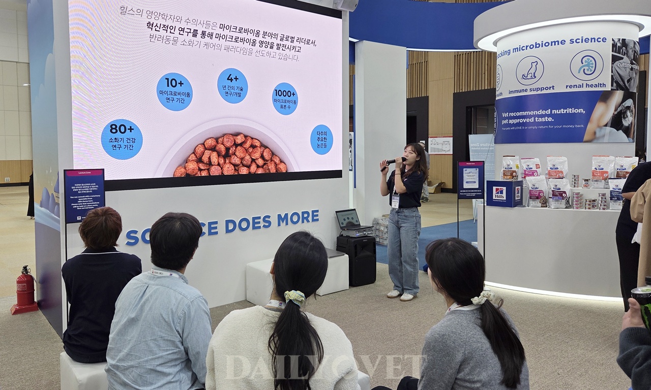 미니세미나도 열렸다. 10월 31일(금)부터 11월 2일(일)까지 대회 기간 동안 총 5회에 걸쳐 힐스 부스에서 한국어, 일본어, 중국어, 영어 강의가 진행됐다. 미니세미나는 10분 가량의 짧은 시간에 영양학적 지식과 힐스 제품 정보를 효율적으로 전달했다.