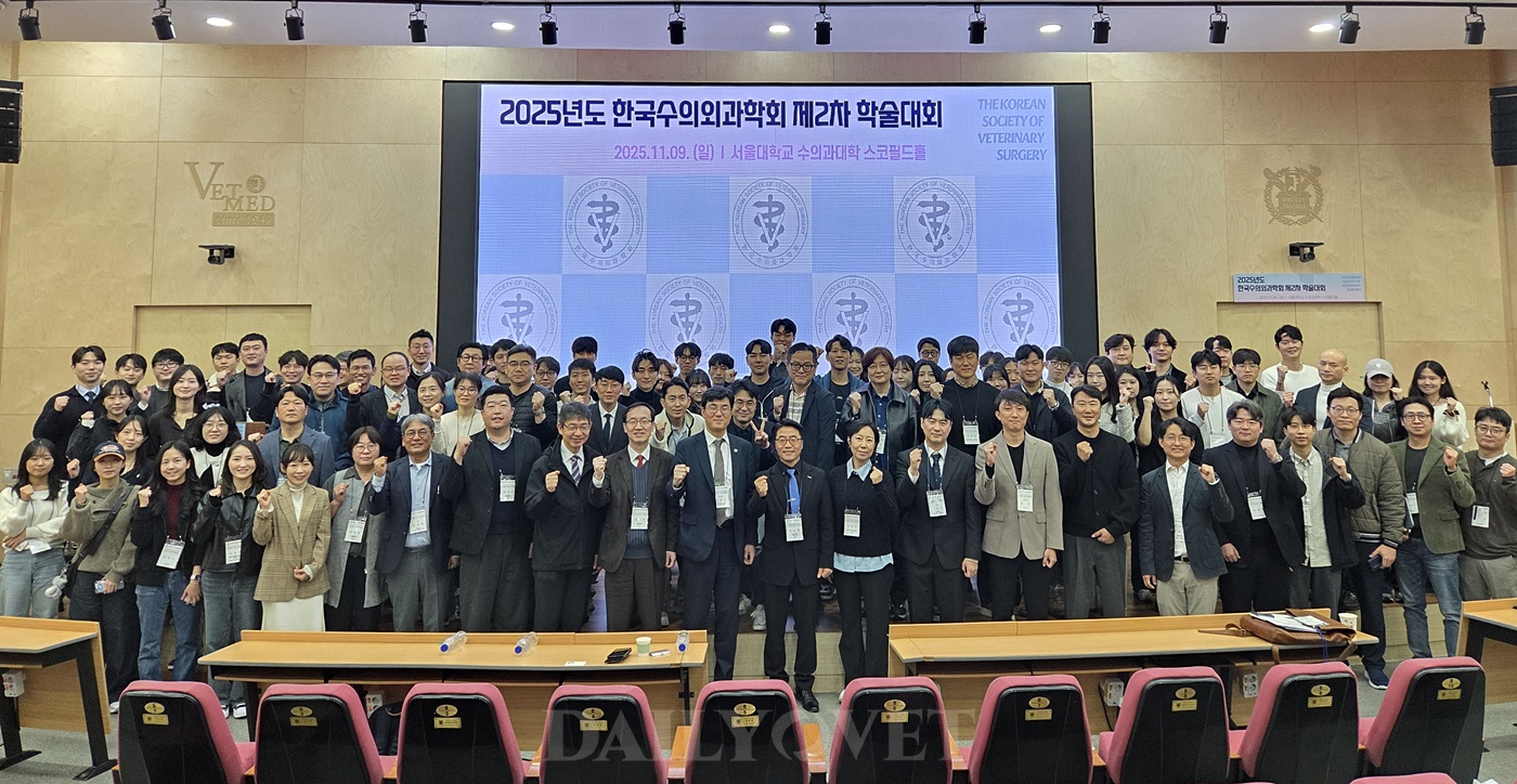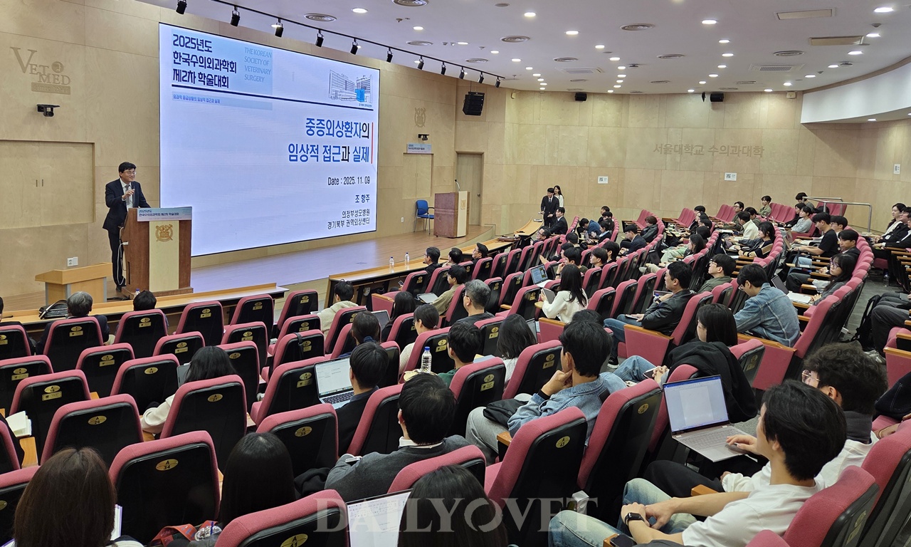 한국수의외과학회(KSVS, 회장 우흥명)가 9일(일) 서울대학교 수의과대학에서 2025년도 제2차 학술대회를 개최했다. ‘외과적 응급상황의 임상적 접근과 실제’를 주제로 열린 이번 학회에는 사전 신청자만으로 강의장이 다 찰 정도로 관심을 받았다.