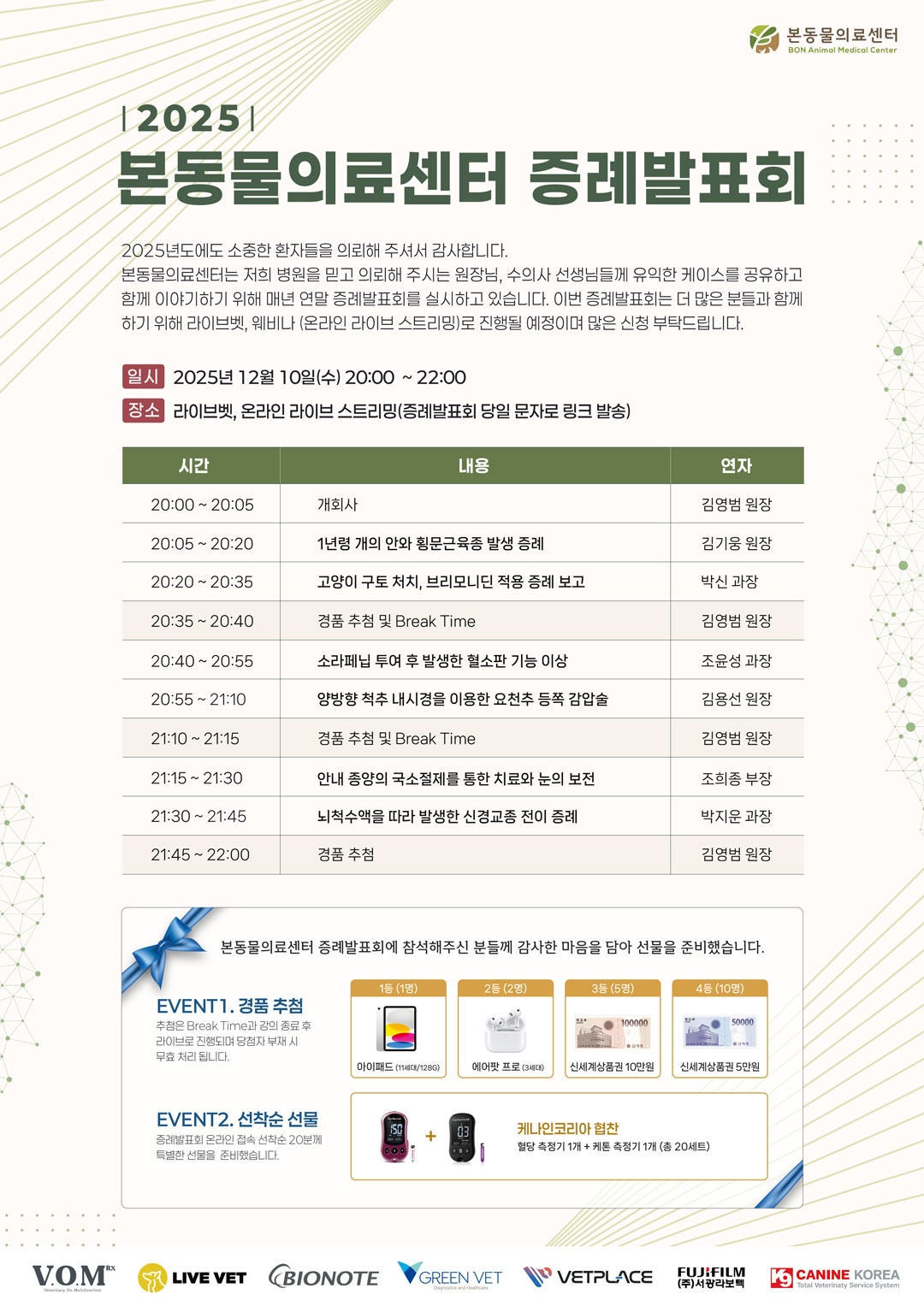 한편, 본동물의료센터는 수의학 교육 플랫폼 ‘라이브벳(LiveVet)’을 통해 이번 증례발표회 다시보기를 제공할 예정이다.