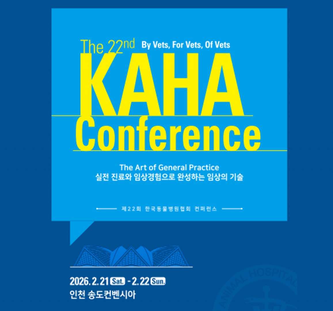 제22회 한국동물병원협회 컨퍼런스(KAHA 컨퍼런스)가 2월 21일(토)~22일(일) 이틀간 인천 송도컨벤시아에서 개최된다.