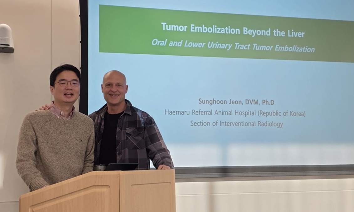 한편, 해마루동물병원은 국내 최초의 이차진료 동물병원으로 2023년부터 비영리재단인 해마루반려동물의료재단 산하에서 운영되고 있다. 인터벤션 시술과 같은 고난도 진료뿐 아니라, 연구, 교육, 특수목적견 의료지원 등 다양한 공익사업을 함께 수행하며 전문성과 사회적 책임을 함께 실천하고 있다. 이번 강연은 해마루가 그간 축적해 온 전문성과 학술성과를 세계적 의료기관과 학술적으로 교류한 뜻깊은 사례로, AMC와 해마루가 공유하는 공공성과 전문성의 가치를 보여줬다.