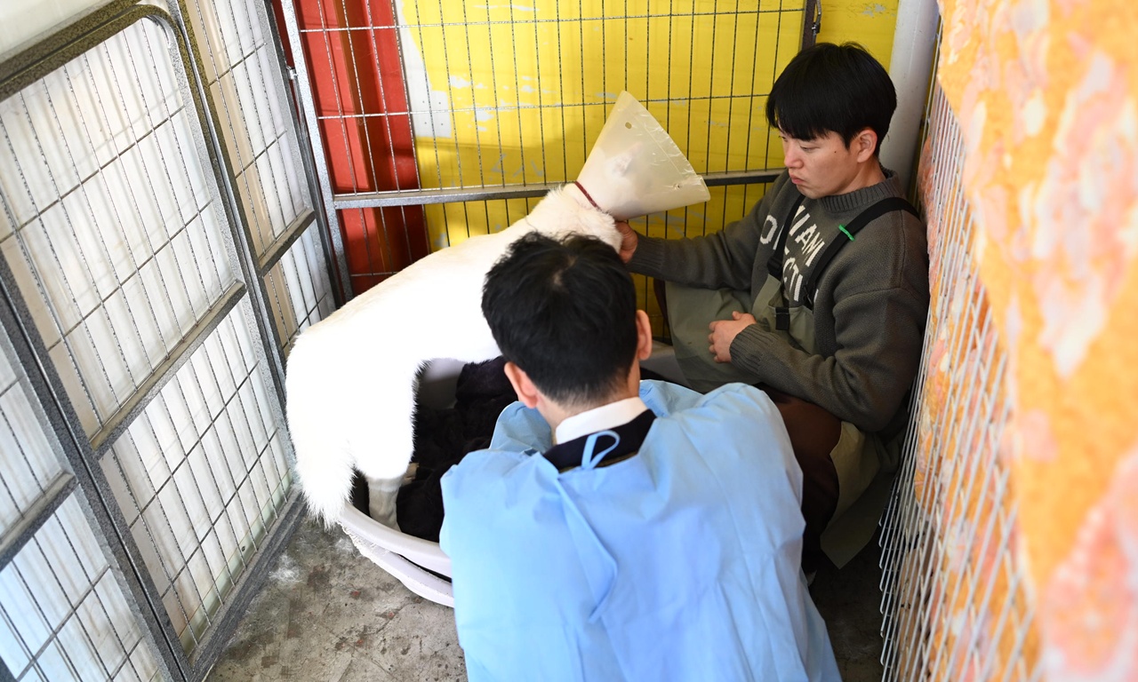 봉사팀은 직접 혈액검사 장비와 각종 검사키트를 준비해 유기동물 43마리를 대상으로 혈액검사, 항체검사, 심장사상충 검사 및 관절·안과·피부질환 등 전반적인 진료를 하고, 결과에 따른 맞춤 처방을 했다. 현장에서는 의료지원과 더불어 미용 봉사, 돌봄 봉사, 사료 및 용품 기부까지 이뤄져, ‘사지 말고 입양하세요’라는 메시지에 힘을 보탰다.
