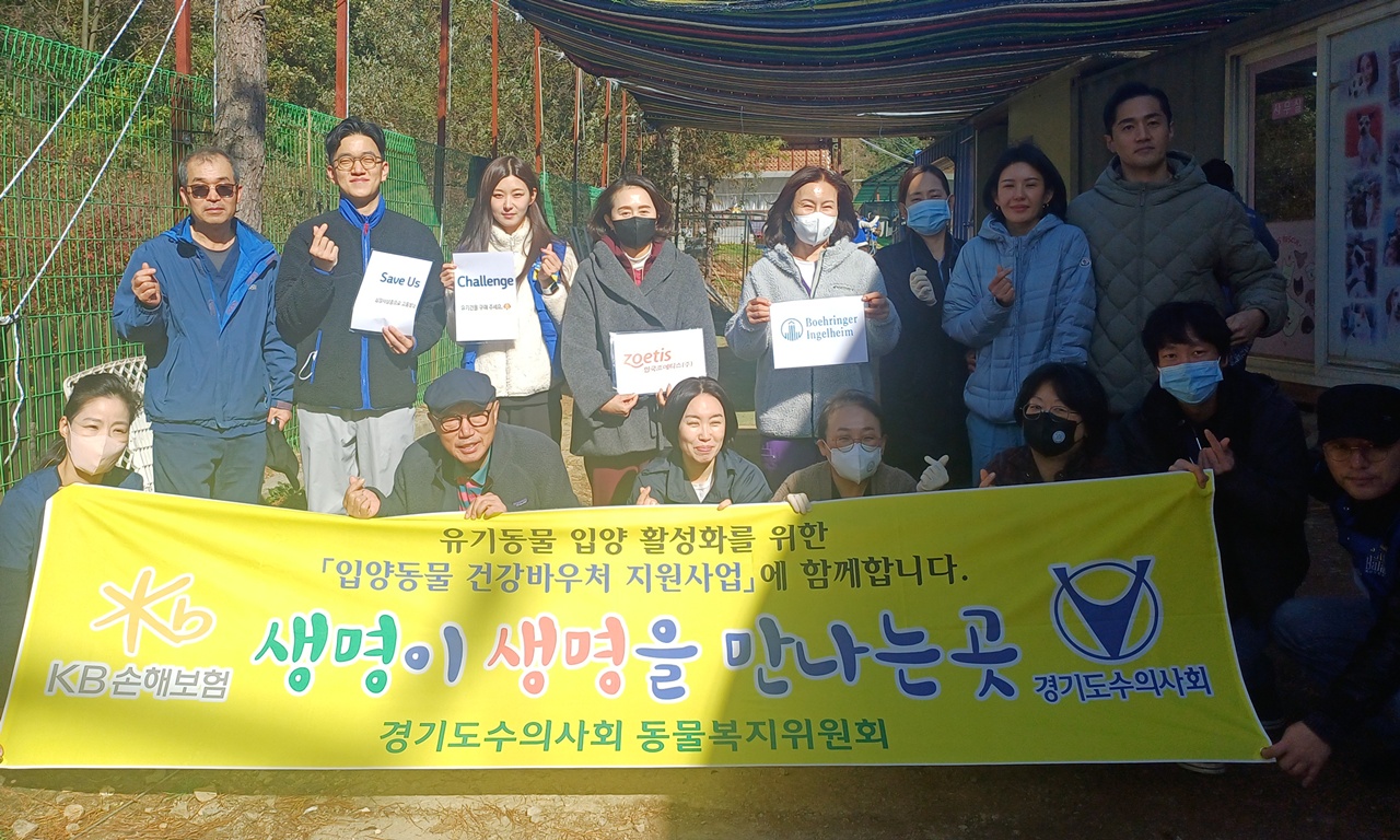 경기도수의사회는 현재 KB손해보험과 함께 ‘입양동물 건강바우처 지원사업’을 펼치고 있다. 경기도에 있는 사설보호소(민간동물보호시설, 민간동물보호소)에서 유기동물을 입양하면, 마리당 20만원의 동물진료비가 지원된다. 사설보호소 유기동물 입양률을 높이기 위해 기획된 사업이다.
