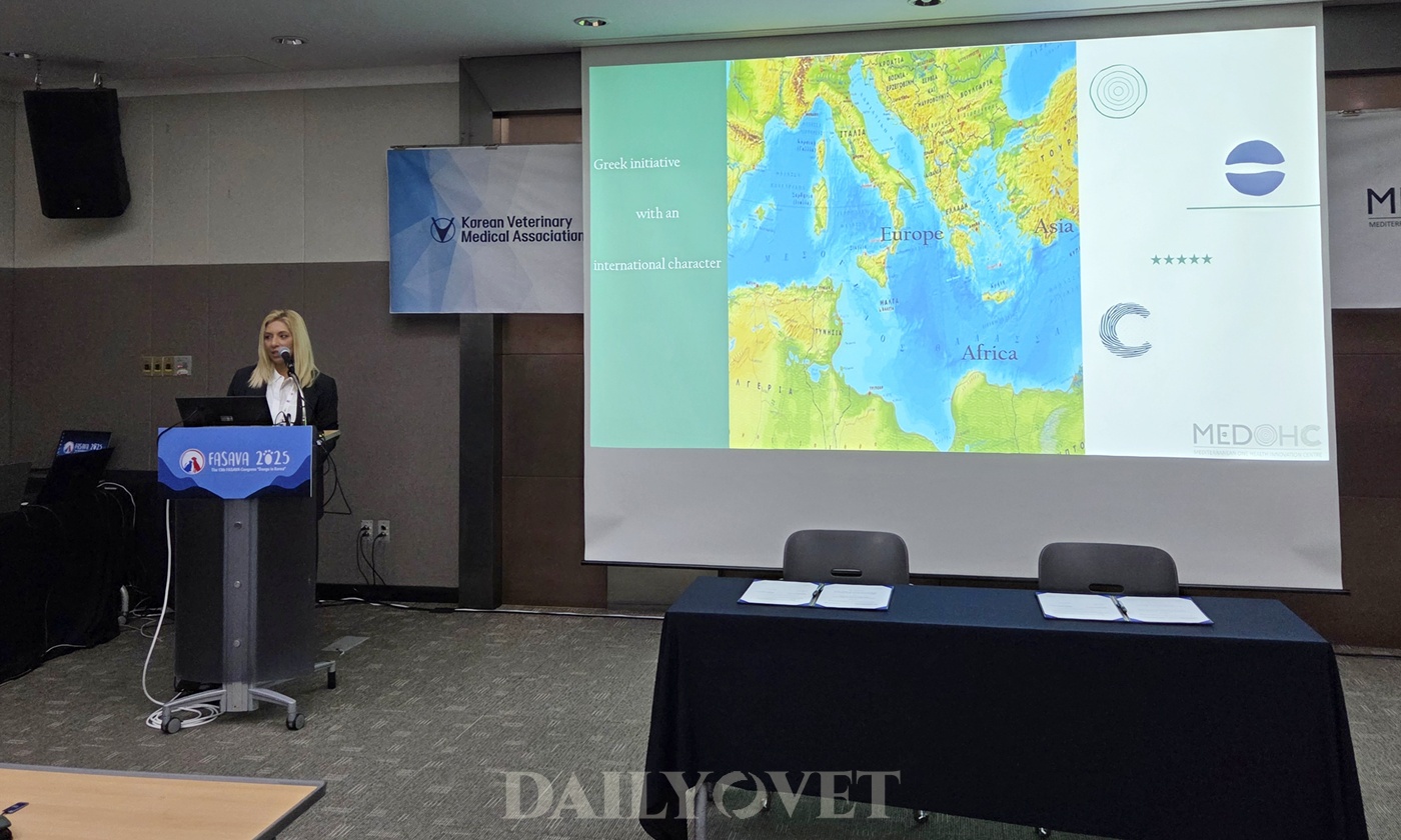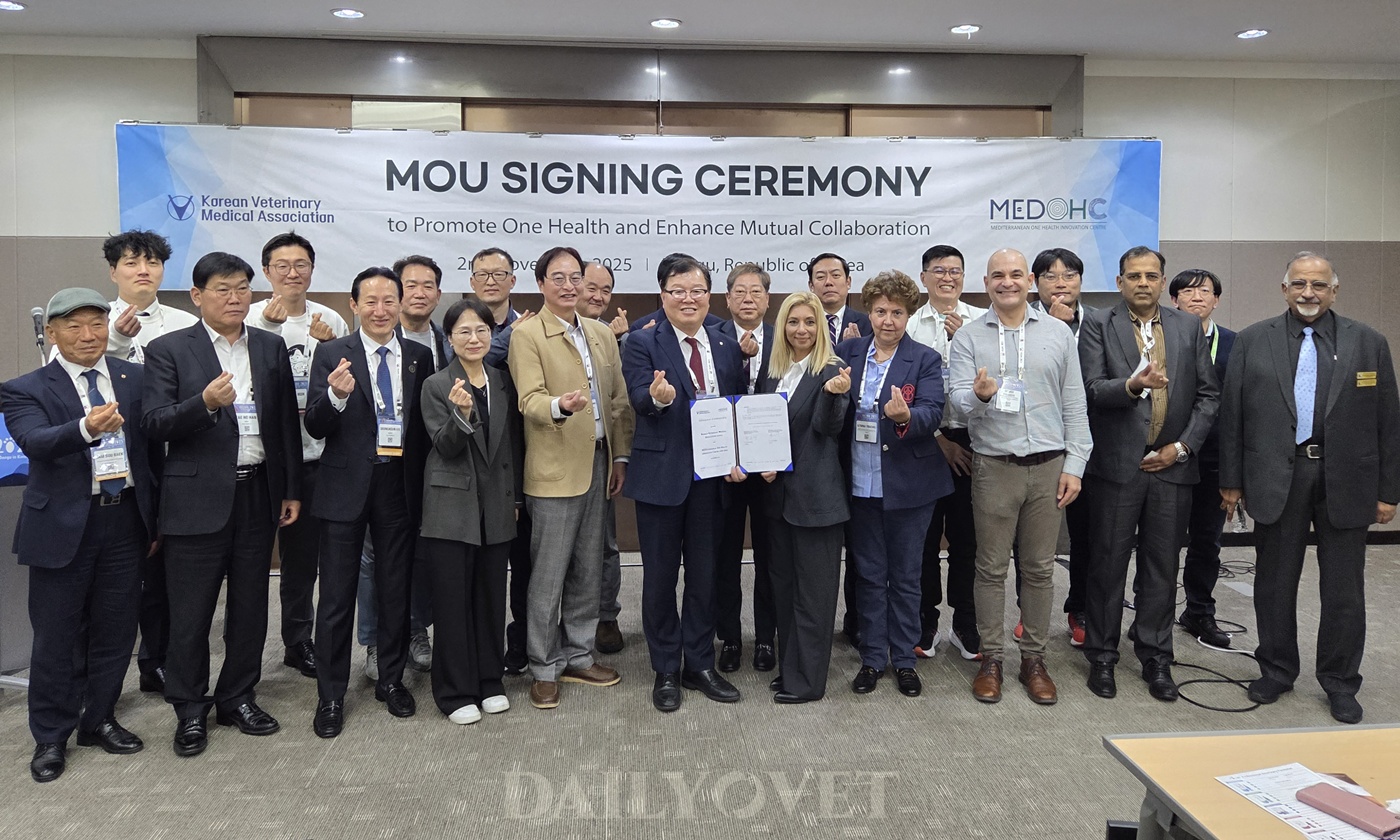 두 사람은 George Valiakos 테살리아대 수의대 교수와 함께 10월 31일(금)부터 11월 2일(일)까지 대구 EXCO에서 열린 2025년 제13차 아시아·태평양소동물수의사대회(FASAVA Congress 2025)에 참가해 MED-OHC를 소개하고, 대한수의사회와 업무협약을 체결했다.