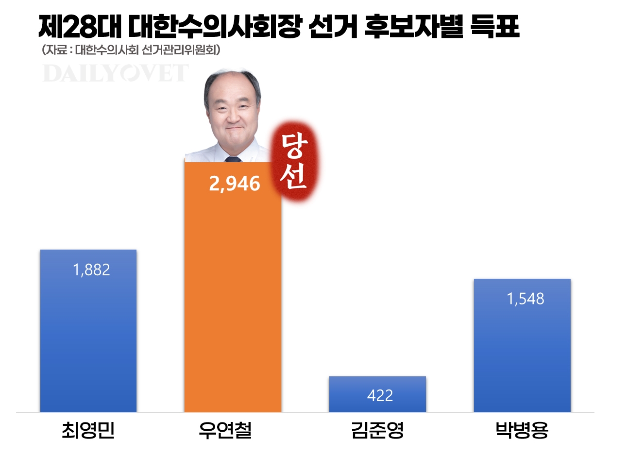 제28대 대한수의사회장 우연철 당선..득표율 43.3%
