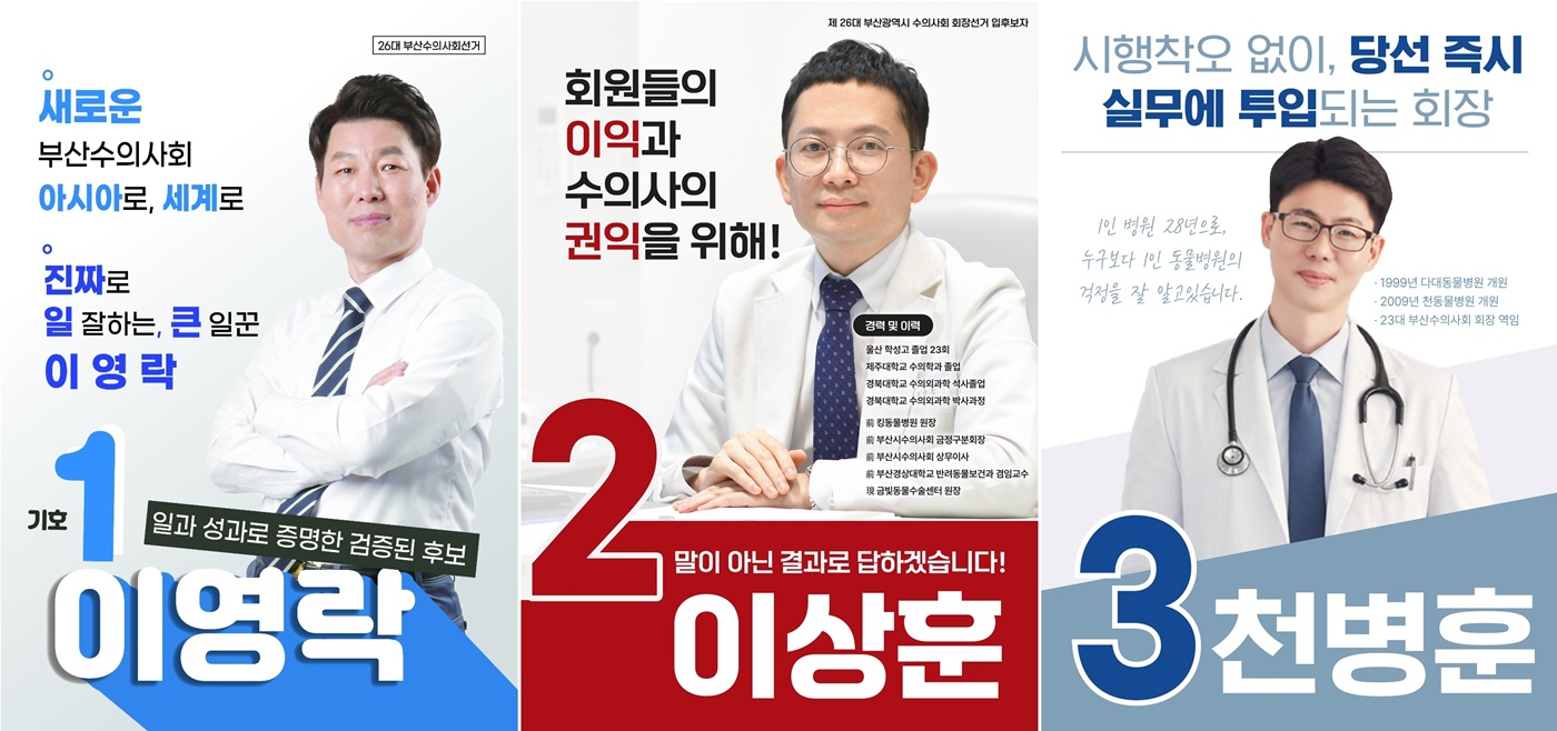 부산광역시수의사회 차기 회장 선거에 이영락·이상훈·천병훈 후보 출마