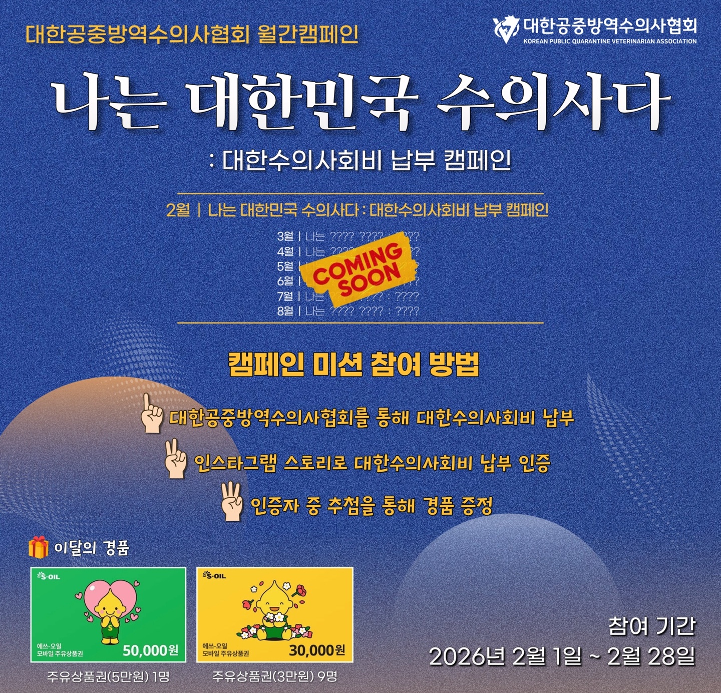 공중방역수의사회 교류와 사회 기여 도모하는 캠페인 매달 시행, 2월 캠페인 주제는 회비 납부