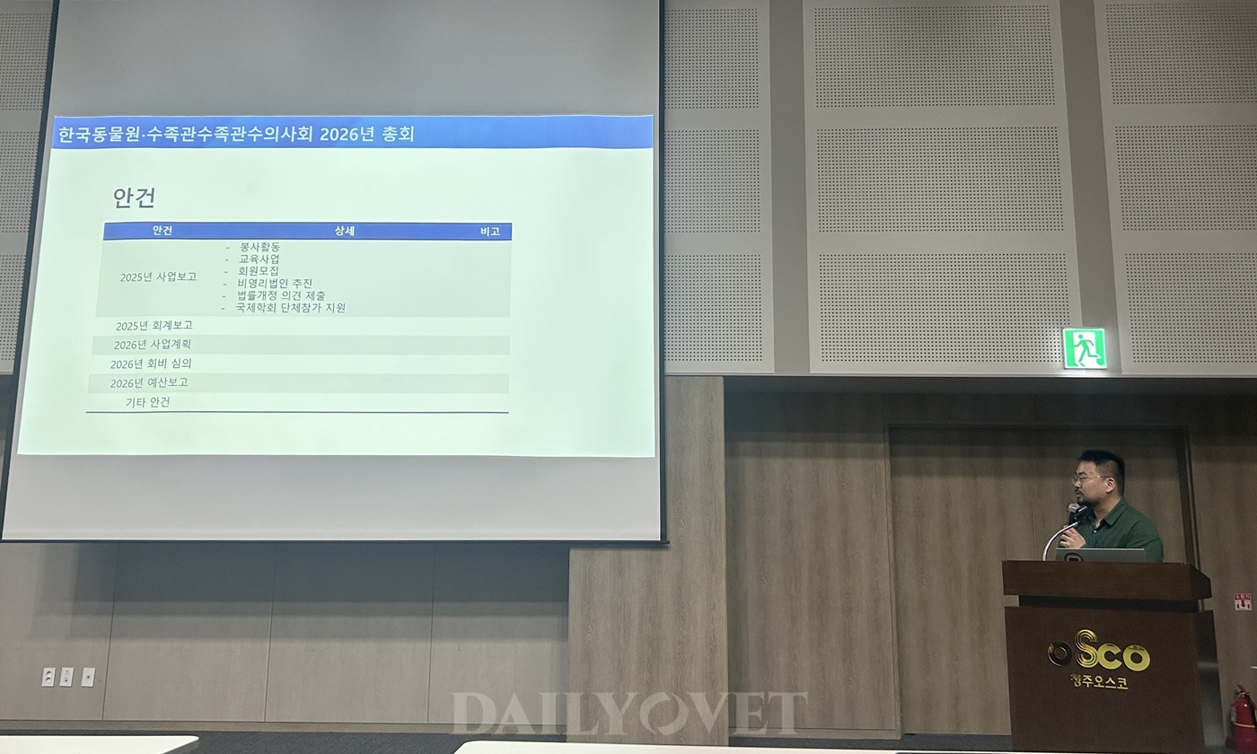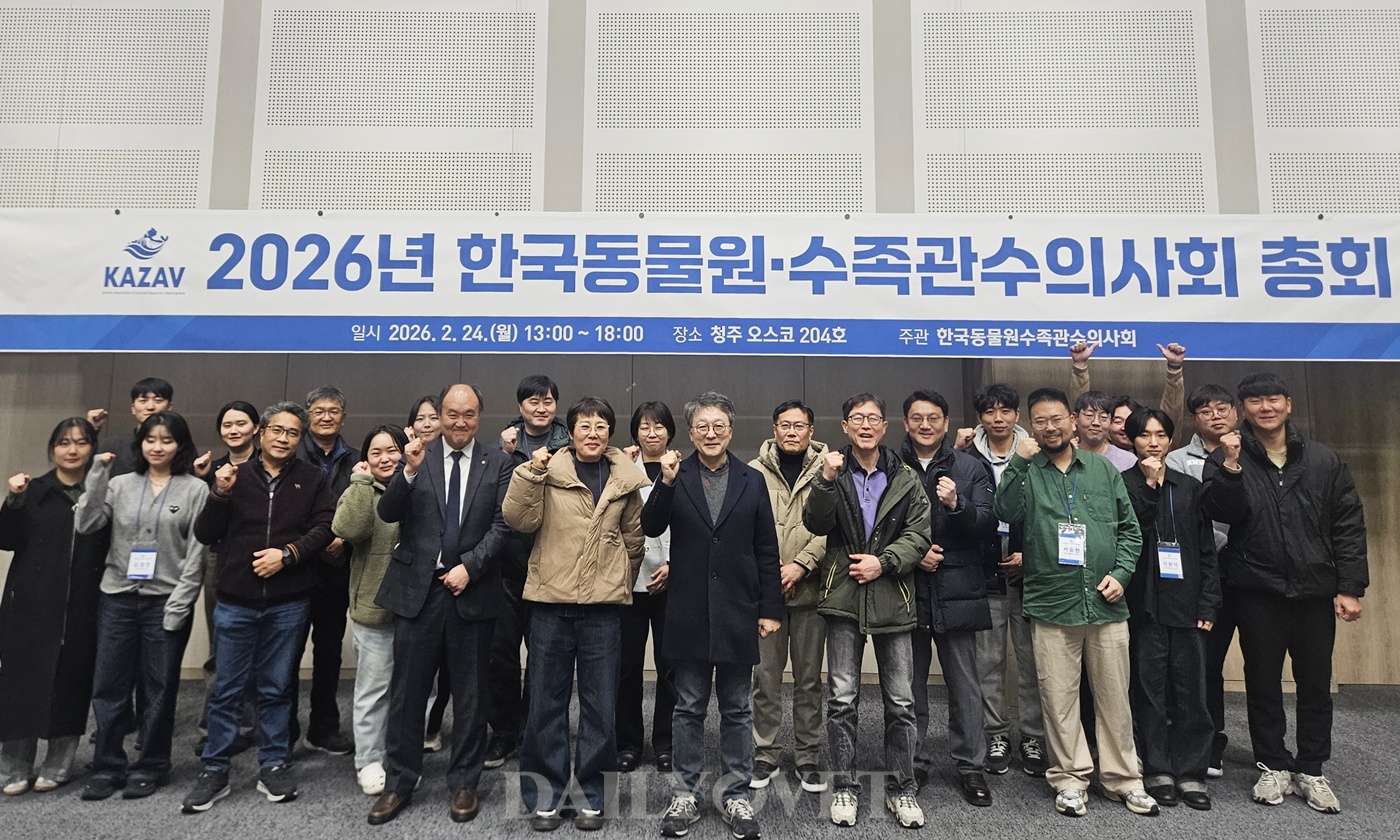 한국동물원수족관수의사회(KAZAV, 회장 김규태)가 24일(월) 오송 청주오스코에서 2026년 정기총회를 개최했다.