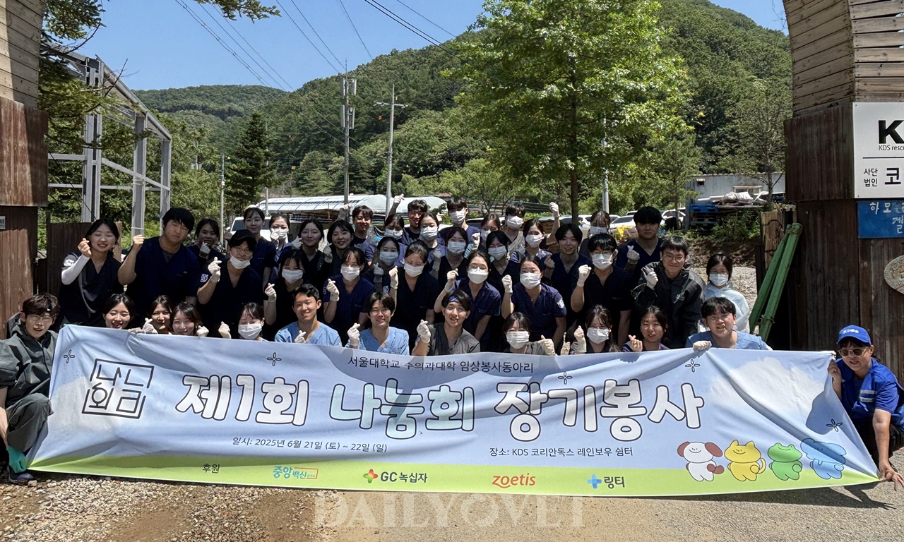 서울대학교 수의과대학 봉사동아리 ‘나눔회’가 6월 21일(토)부터 22일(일)까지 1박 2일간, 용인에 위치한 유기견 보호소 ‘코리안독스(KDS) 레인보우쉼터’에서 장기 봉사활동을 진행했다. 이번 봉사에는 학부생 39명이 자발적으로 참여했으며, 황철용 교수(피부과)와 임재철 교수(수의면역학)가 함께해 그 의미를 더했다.