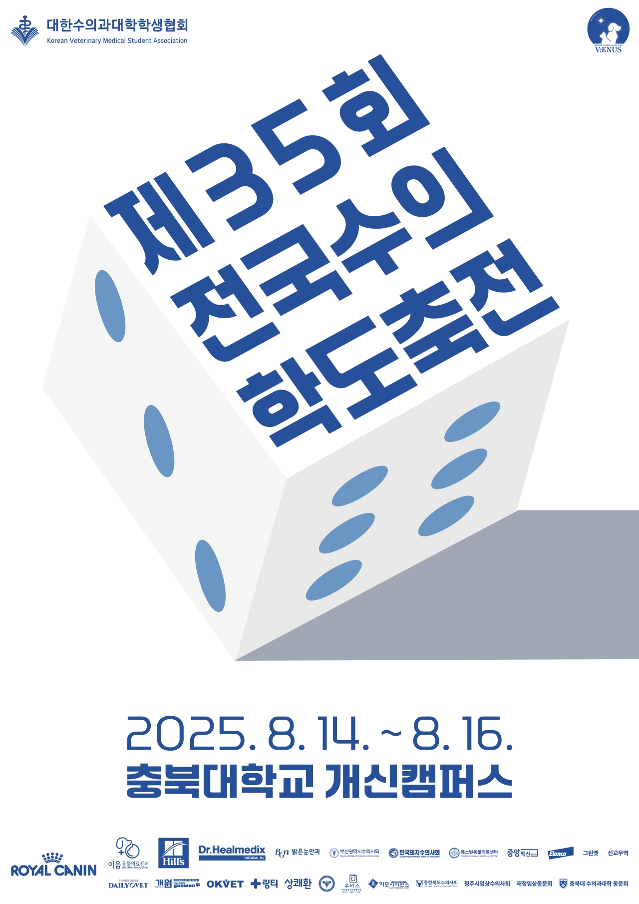 제35회 전국수의학도축전(전수축)이 오는 8월 14일(목)부터 16일(토)까지 2박 3일간 청주 충북대학교 개신캠퍼스에서 열린다.