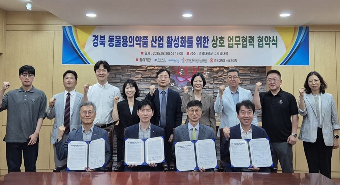 경북대학교 수의과대학(학장 이만휘)과 경상북도, 포항시, 포항테크노파크가 경북 동물용의약품 산업 활성화를 위한 상호 업무협력 협약을 맺었다.