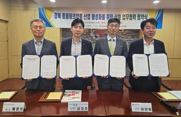 최혁준 경상북도 메타에이아이(AI)과학국장은 “이번 협약은 매우 시의적절하고 중요한 의미를 가진다”며 “최근 정부가 발표한 동물용의약품 산업 발전 방안에 발맞춰 혁신 신약 개발과 기술혁신으로 나아가야 할 때”라고 말했다.