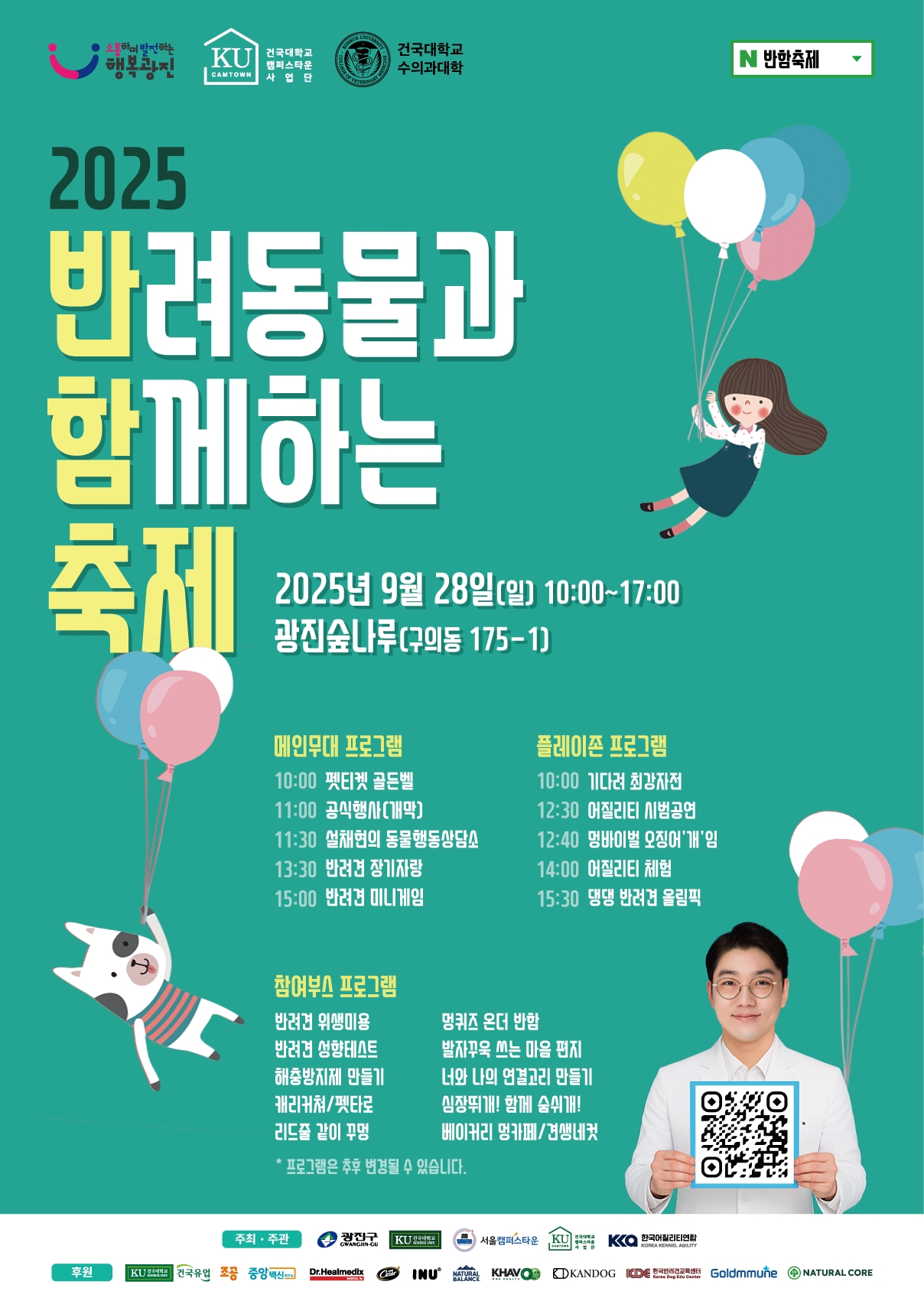 건국대학교 수의과대학 학생회는 “이번 축제는 수의학도와 지역사회가 함께 어울리며 새로운 반려문화를 만들어가는 자리”라며 “다양한 체험과 프로그램을 통해 반려동물과 사람이 함께 웃고 추억을 나눌 수 있는 따뜻한 시간이 되기를 바란다”고 전했다.