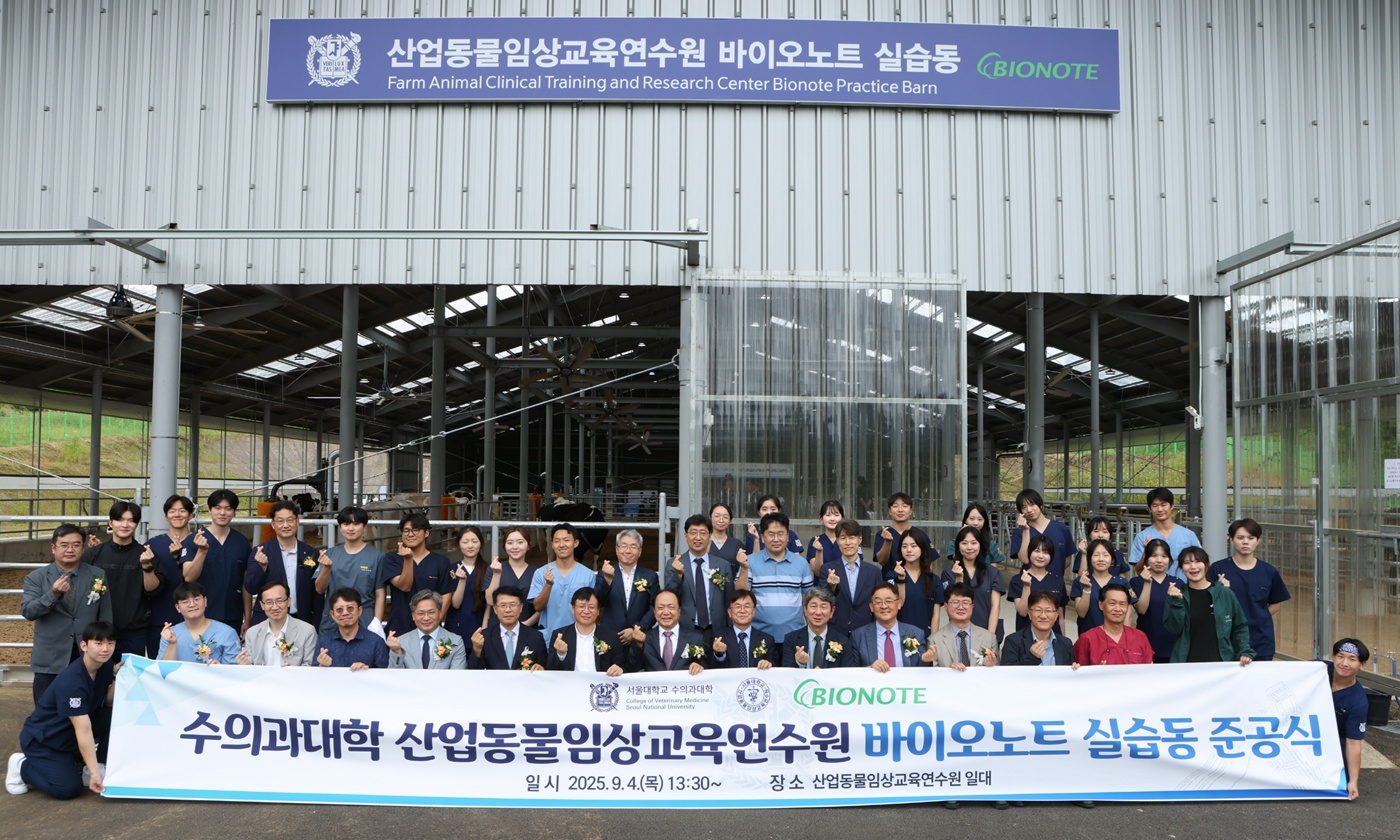 서울대학교 수의과대학(학장 조제열)이 9월 4일(목) 강원도 평창에 있는 산업동물임상교육연수원에서 ‘바이오노트실습동(BioNote Practice Barn)’ 준공식을 개최했다.