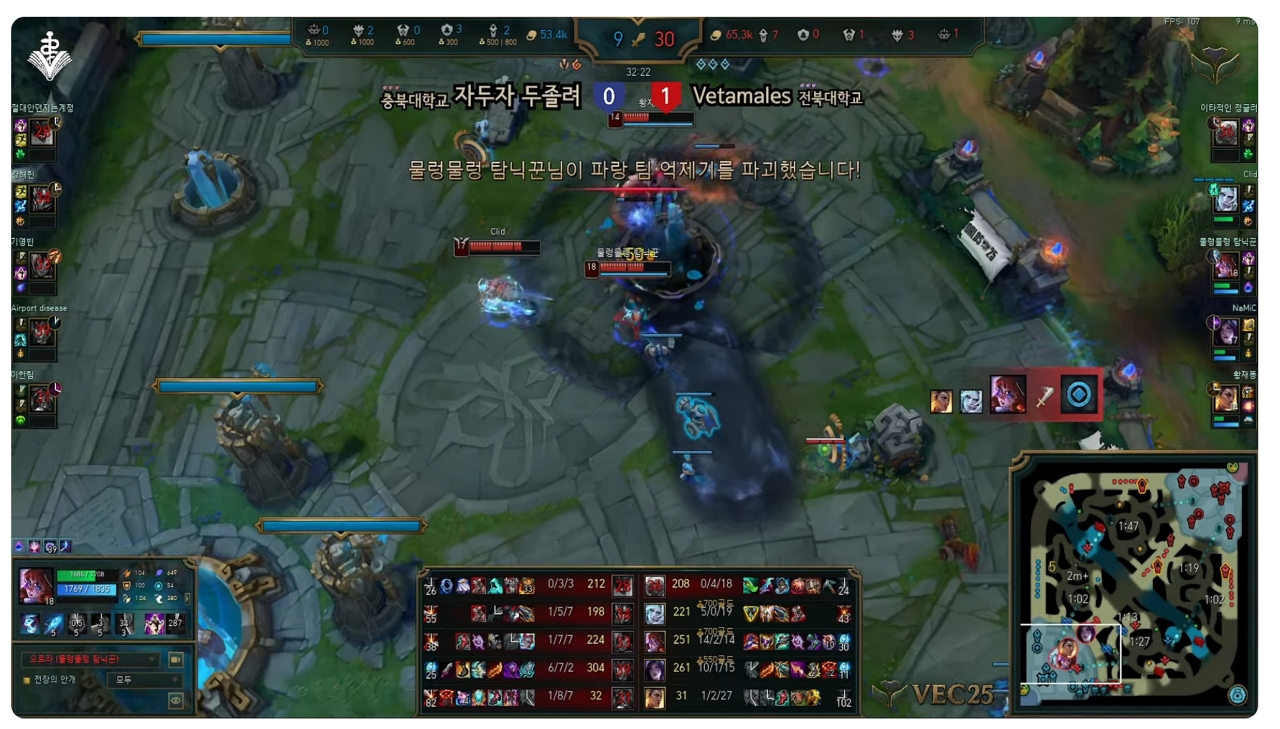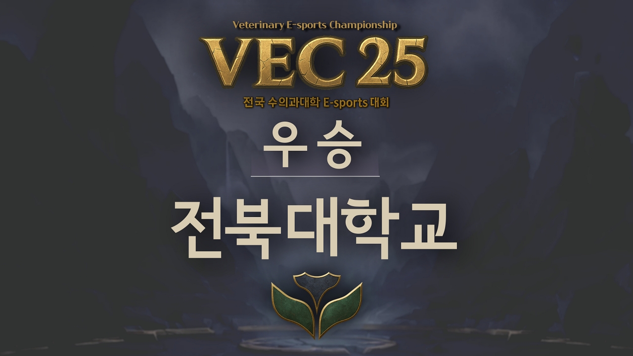 2025 Veterinary E-Sports Championship(VEC) 리그오브레전드(LoL) 대회에서 전북대학교 수의과대학 대표팀 ‘Vetamales’가 정상에 올랐다. 전략적 팀 전투(롤토체스) 부문에서는 전남대 이제강 학생이 우승을 차지했다.