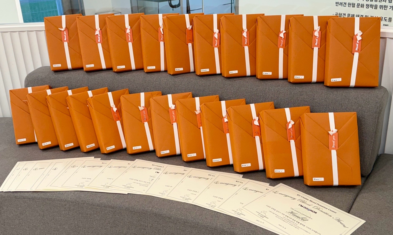건국대 KU 아임도그너 헌혈센터, ‘응급헌혈견’ 22마리에 감사선물 전달