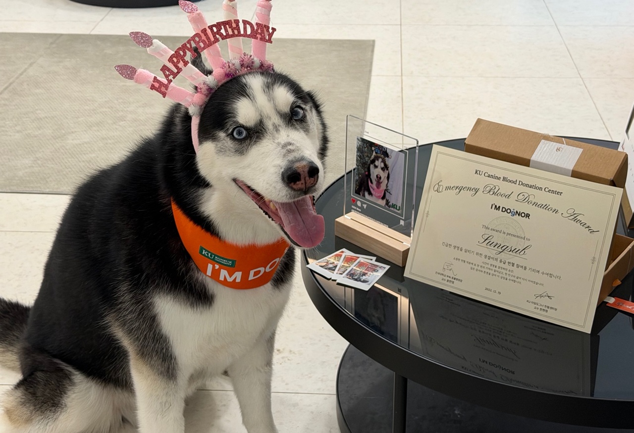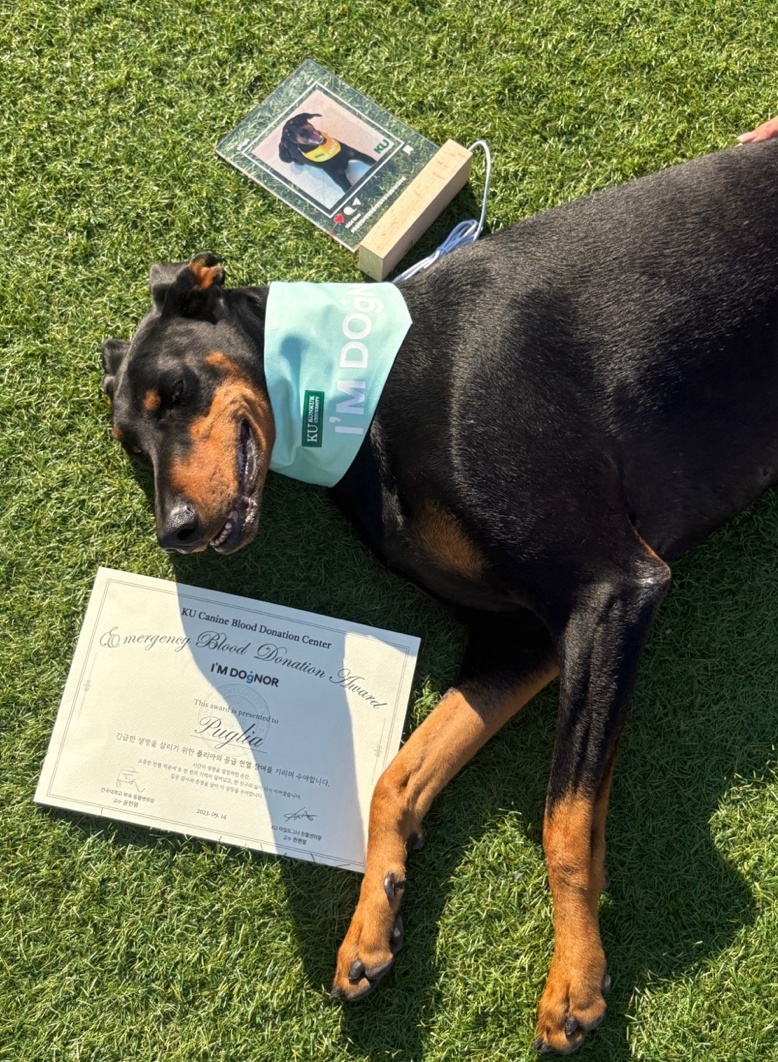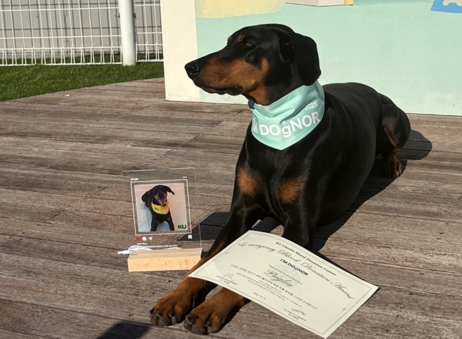 건국대학교 동물병원 산하 ‘KU 아임도그너(KU I’M DOgNOR) 헌혈센터‘가 센터 개소 이후 응급상황에서 소중한 생명을 구하는 데 기여한 응급헌혈견 22마리와 보호자들에게 특별한 감사의 마음을 전했다.
