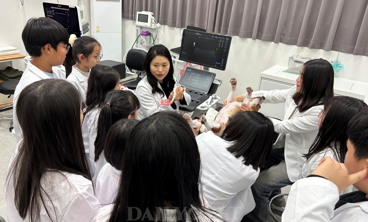 어린이 수의사 교실은 사전 신청을 통해 선발된 10명을 대상으로 진행됐다. 이름이 새겨진 수의사 가운과 선서를 통해 하루 동안 수의사가 되어보는 체험을 제공했다. 내과와 외과, 진단의학과 영상의학 등 여러 과를 직접 체험하며 눈높이 교육을 통해 수의사를 꿈꾸는 아이들에게 흥미를 심어주었다.