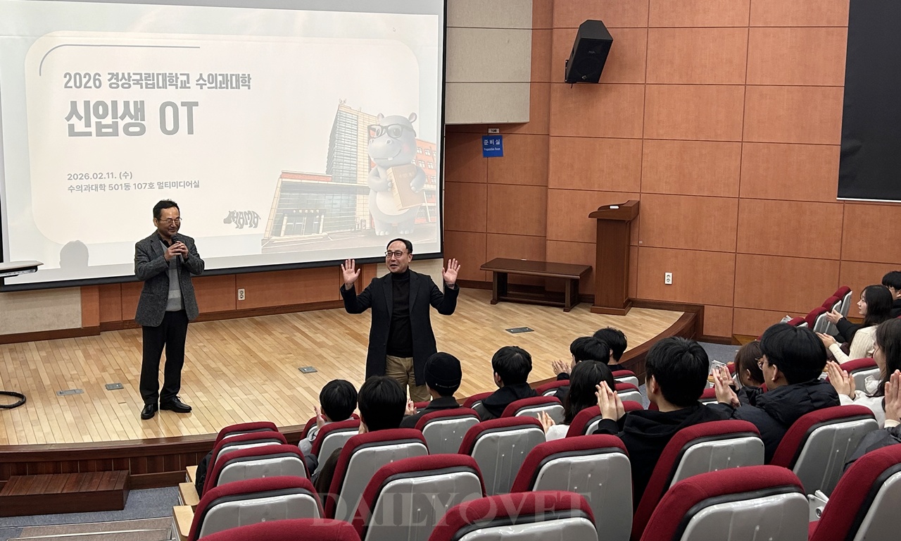 경상국립대 수의과대학 제37대 하마 학생회가 11일(수) 2026학년도 신입생을 대상으로 오리엔테이션을 개최했다. 경상국립대 수의대 멀티미디어실에서 열린 이날 행사에는 26학번 신입생 40명이 참여했다.