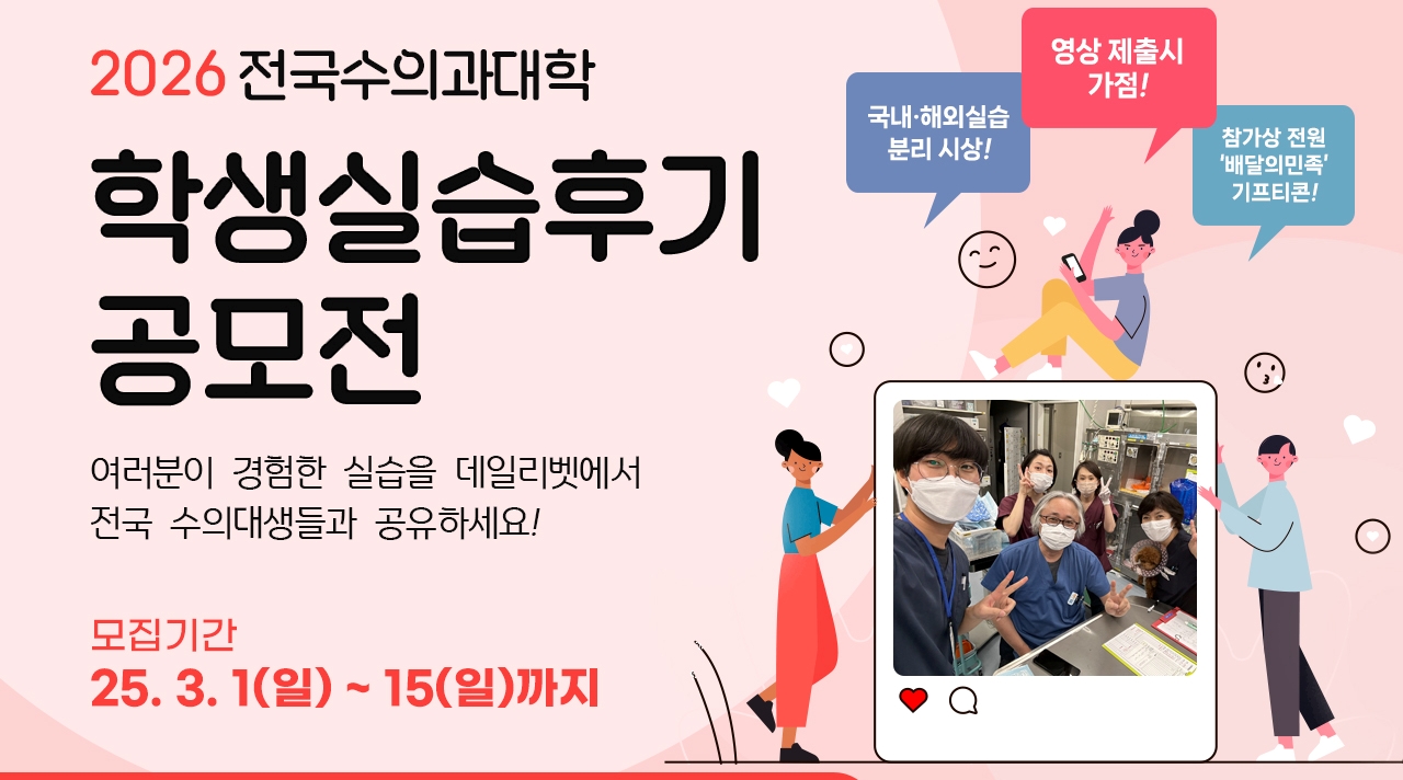 데일리벳 학생기자단·대한수의과대학학생협회 공동 주최..3월 1일(일) ~ 15일(일) 응모