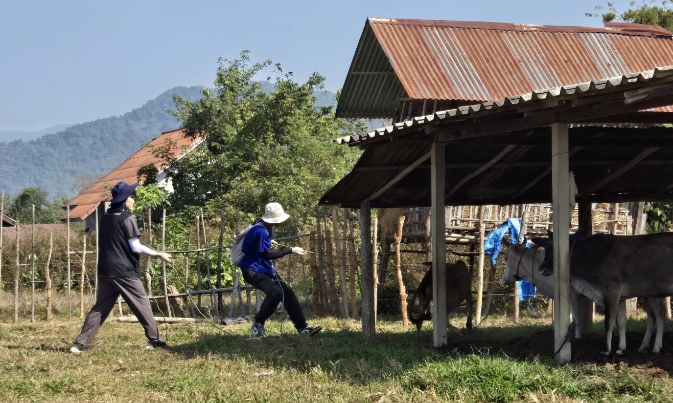 한국 학생뿐만 아니라 라오스 학생들에게도 약품 관리, 접종, 마킹 등의 역할을 돌아가며 경험할 수 있도록 하였고, 한국 학생들 역시 라오스 학생들과 함께 대동물 보정에 적극적으로 참여하였다. 한 팀에서는 라오스 학생이 구충 작업을 전적으로 담당하기도 하였다. 이러한 협력 과정 속에서 양국 학생들은 모두 진지한 태도로 봉사에 임하였으며, 봉사활동을 성공적으로 마무리하는 데 큰 도움이 되었다. 특히 보정 과정, 농장주와의 소통, 접종 기록 관리 측면에서 라오스 교수님들과 학생들의 역할이 매우 컸다.