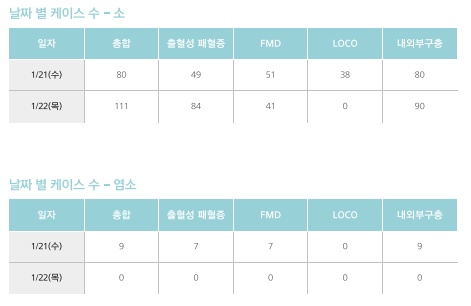 대동물 활동 보고 – 날짜별 소 & 염소 케이스 수