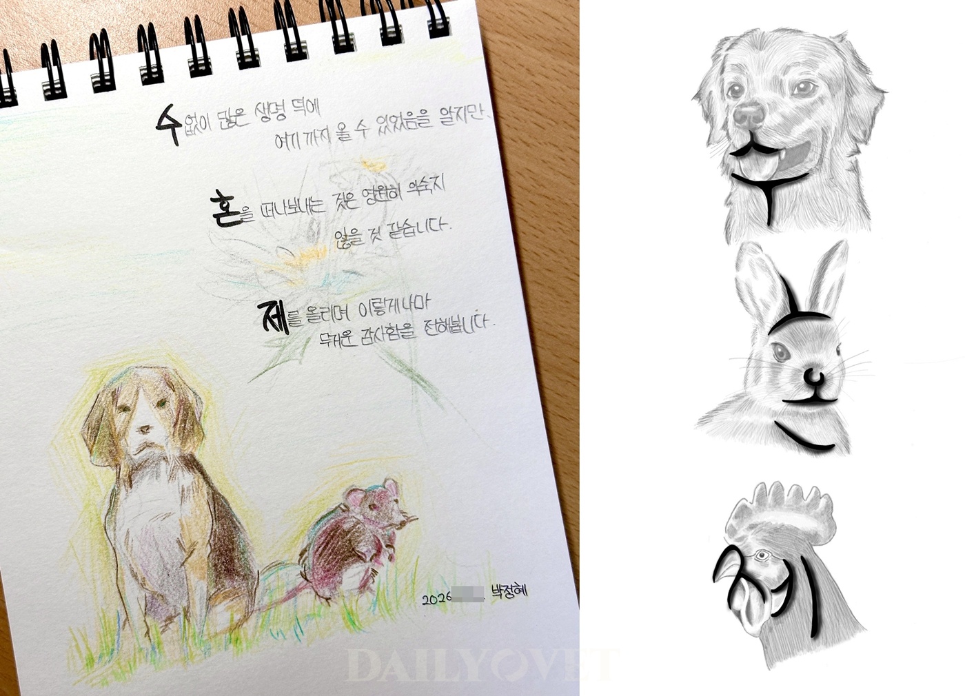 2026년 제주대 수의대 수혼제 공모전 수상작 일부. 왼쪽부터) 박정혜(본1), 유정윤(예1) 학생 작품