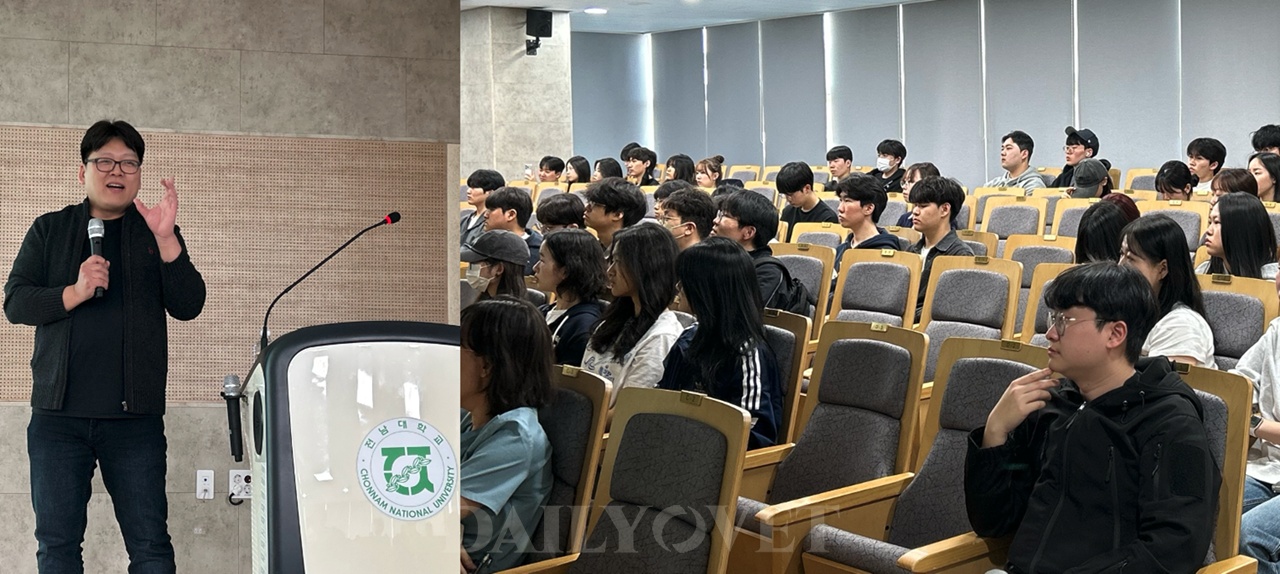 김성태 수의사가 모교 전남대 수의대에서 캐나다 수의사의 삶에 대해 강의했다.