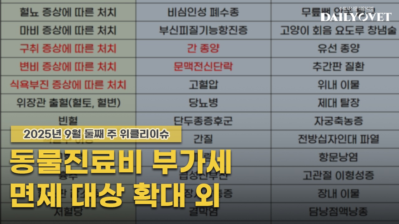 지난주 수의계 이슈를 빠르게 돌아보는 ‘위클리이슈’입니다. 2025년 9월 둘째주에는 어떤 일들이 있었을까요?